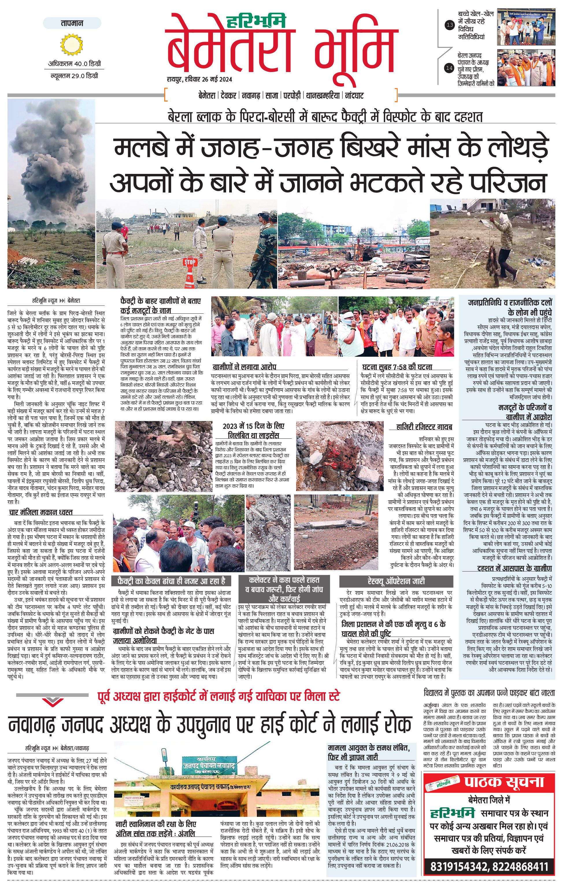 बेमेतरा भूमि - 26 May 2024 - - Page 1