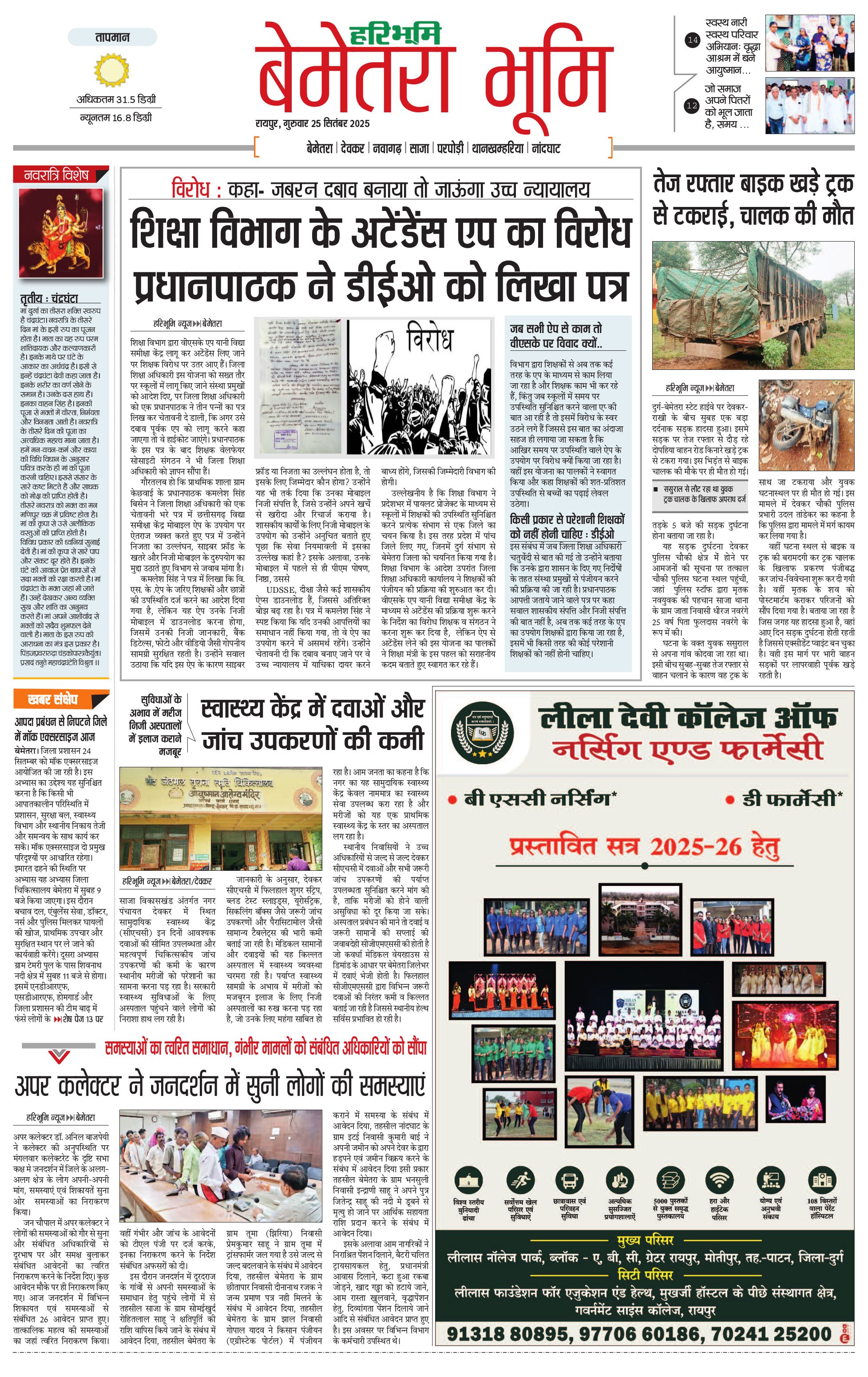 बेमेतरा भूमि - 25 Sep 2025 - - Page 1