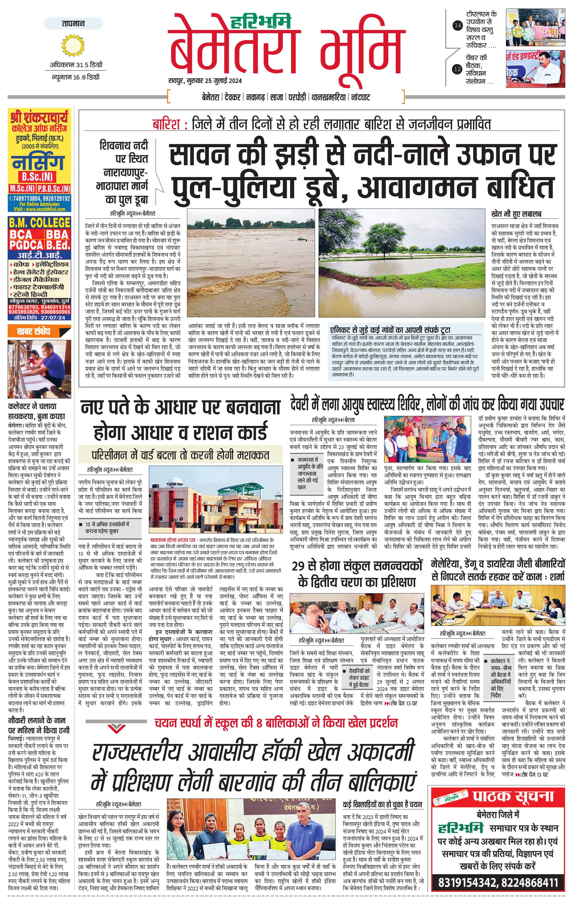 बेमेतरा भूमि - 25 Jul 2024 - - Page 1
