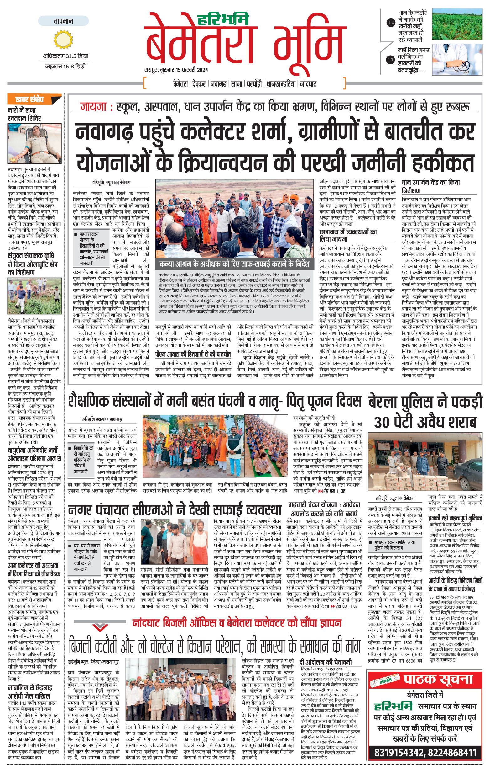 बेमेतरा भूमि - 15 Feb 2024 - - Page 1