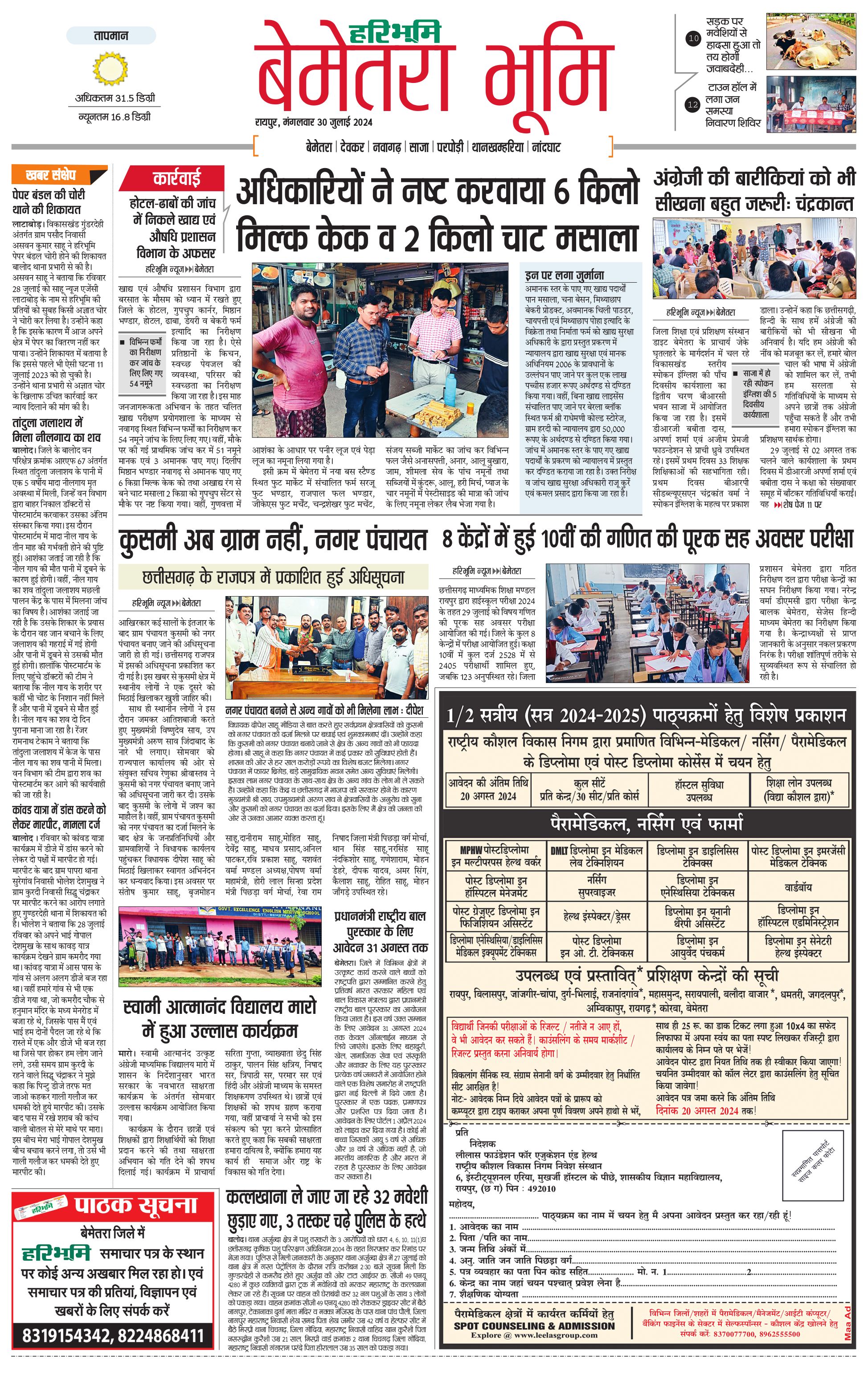 बेमेतरा भूमि - 30 Jul 2024 - - Page 1