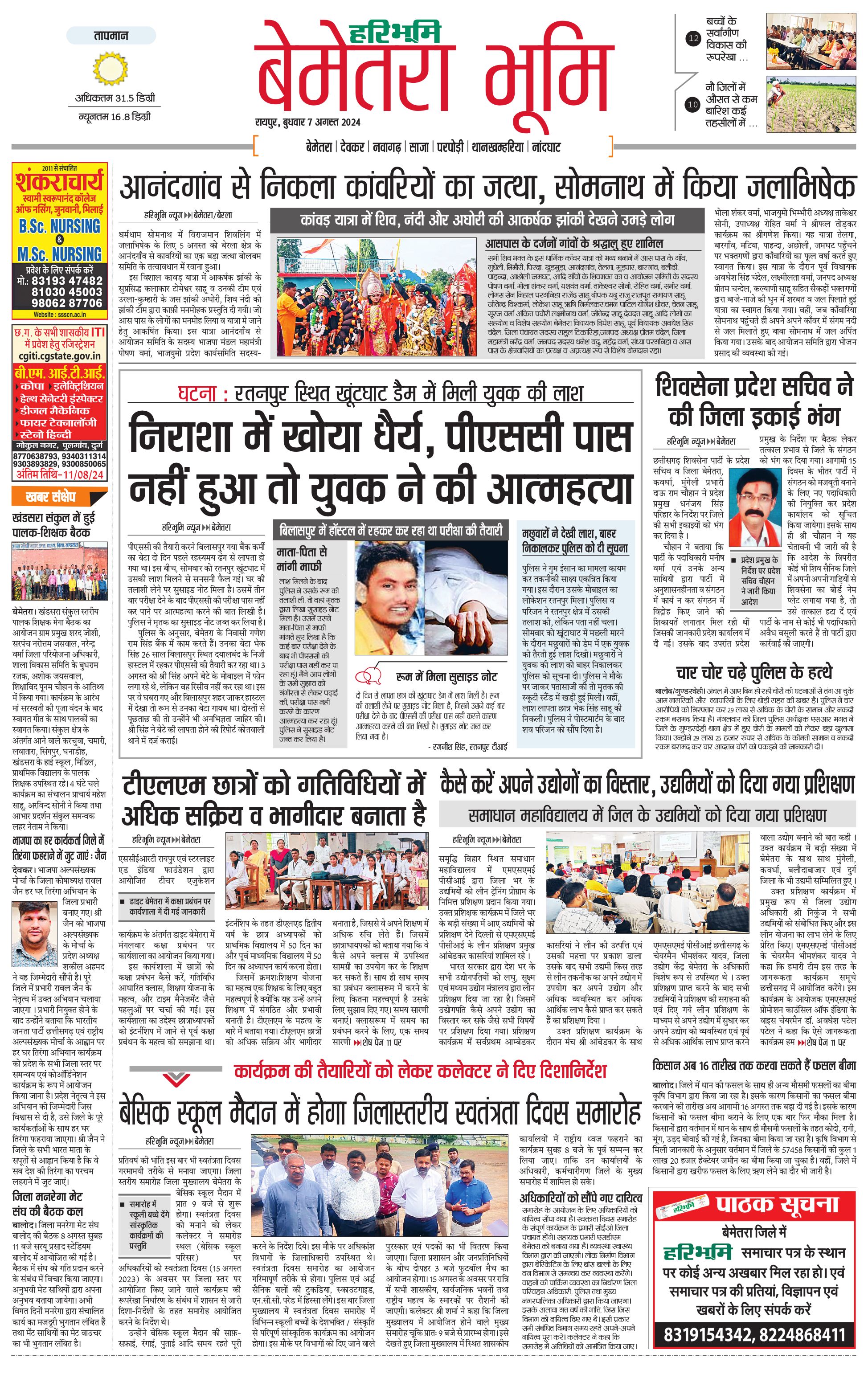 बेमेतरा भूमि - 07 Aug 2024 - - Page 1