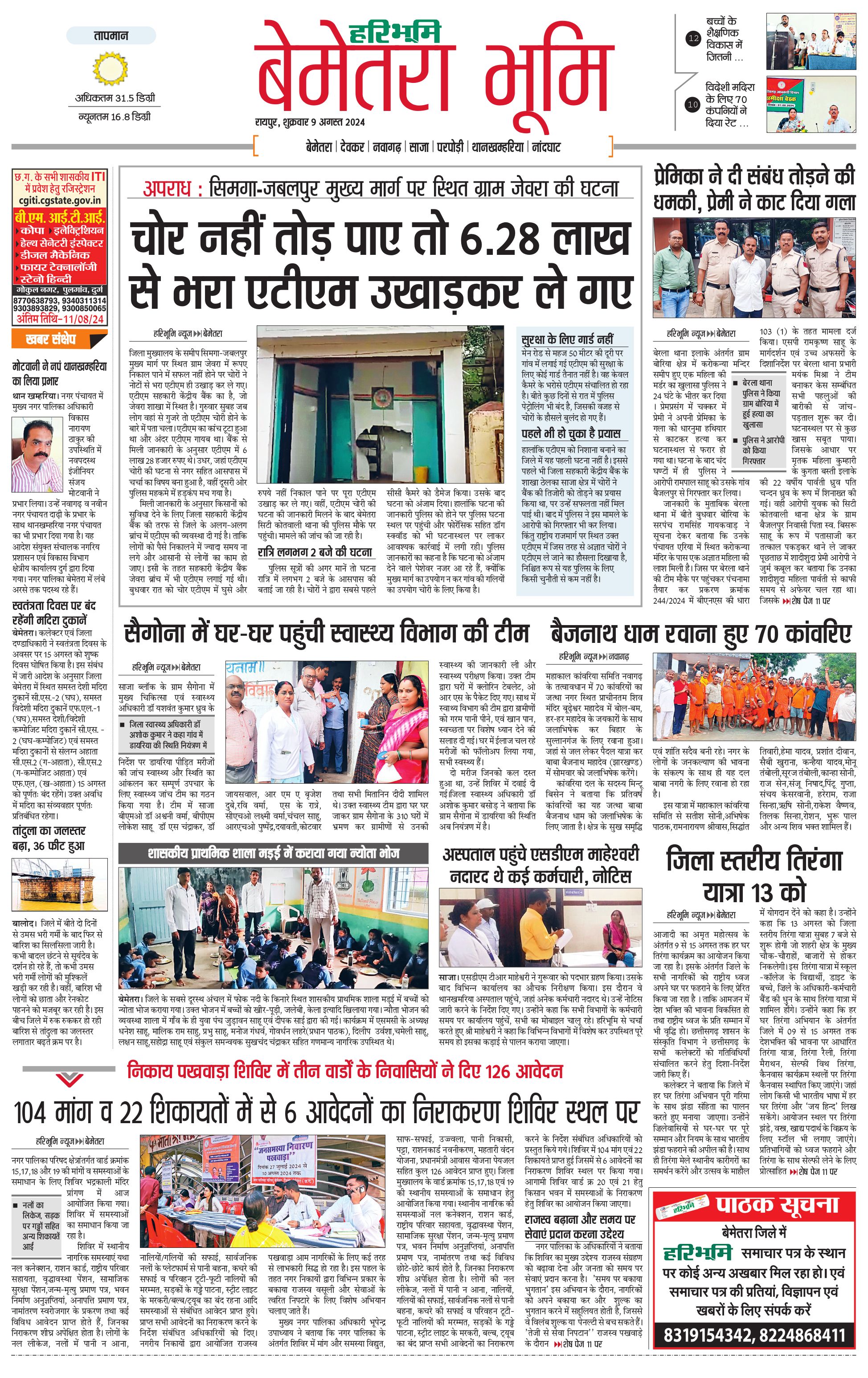 बेमेतरा भूमि - 09 Aug 2024 - - Page 1