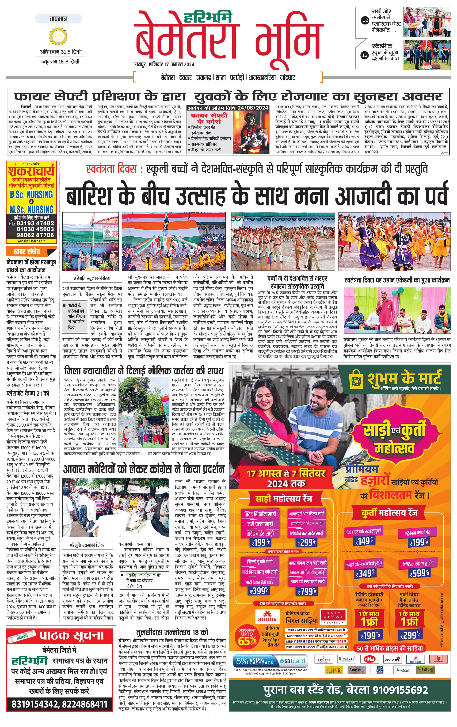 बेमेतरा भूमि - 17 Aug 2024 - - Page 1