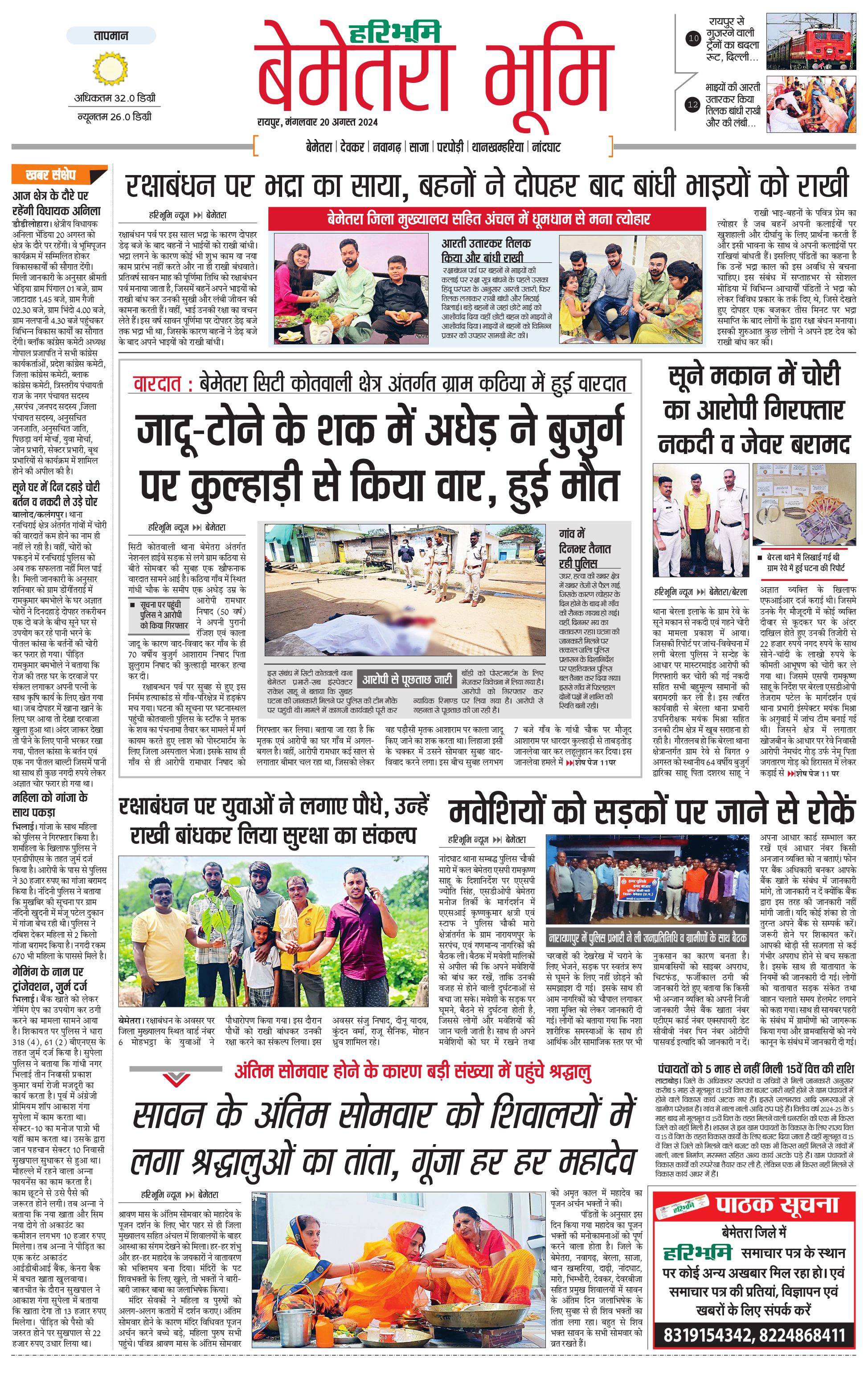 बेमेतरा भूमि - 20 Aug 2024 - - Page 1