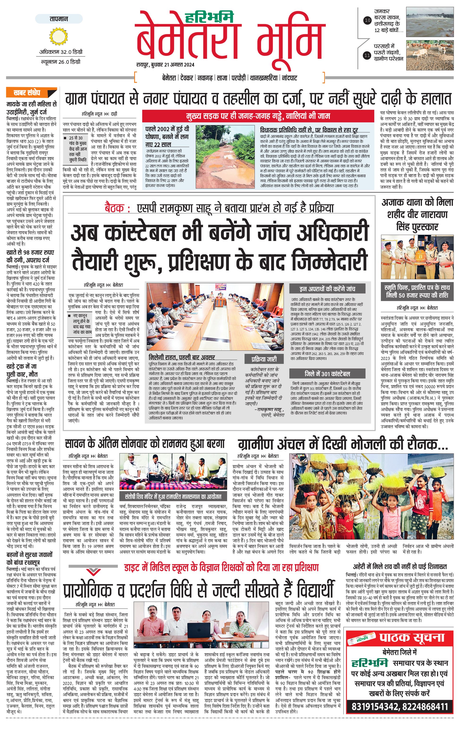 बेमेतरा भूमि - 21 Aug 2024 - - Page 1