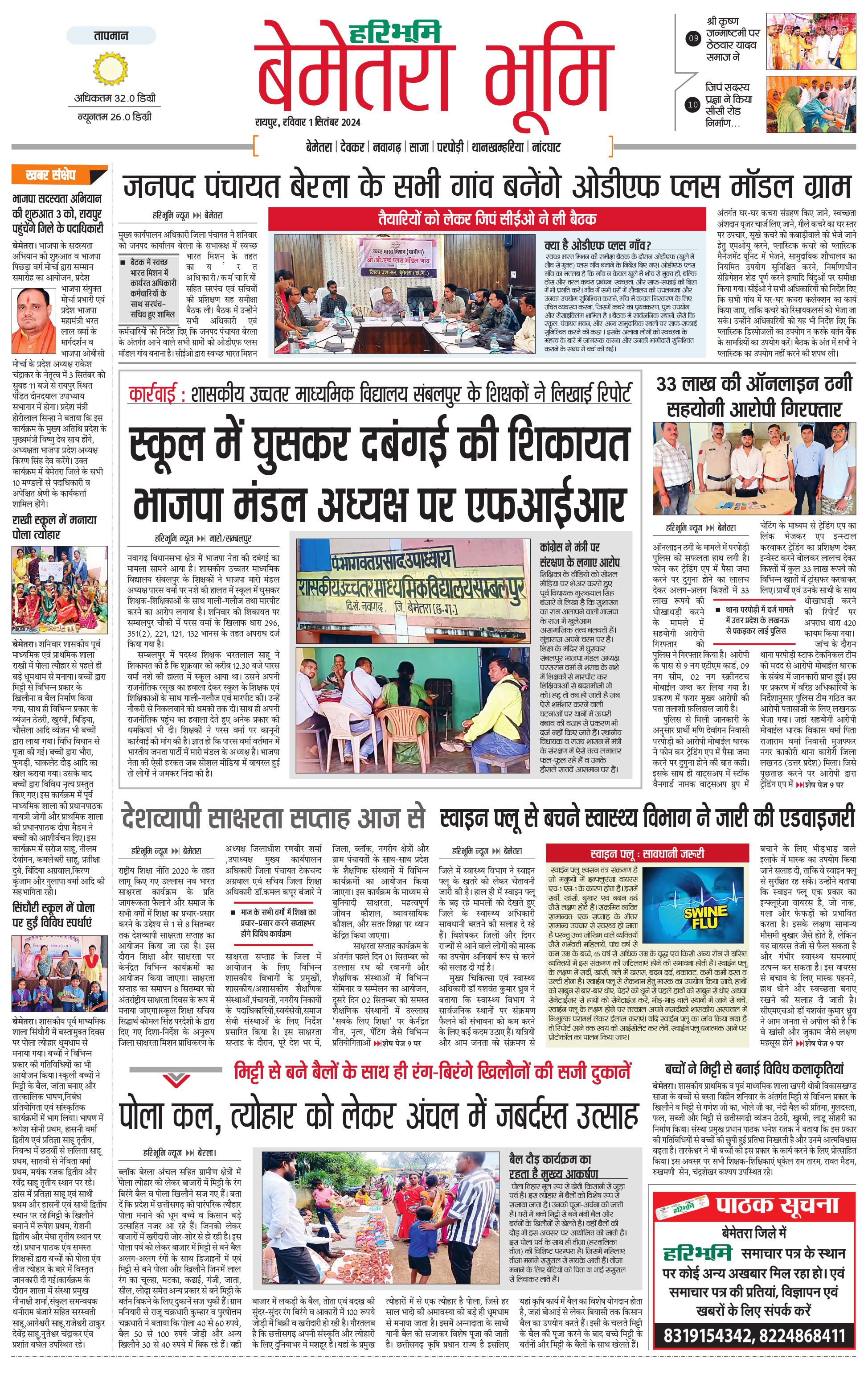 बेमेतरा भूमि - 01 Sep 2024 - - Page 1