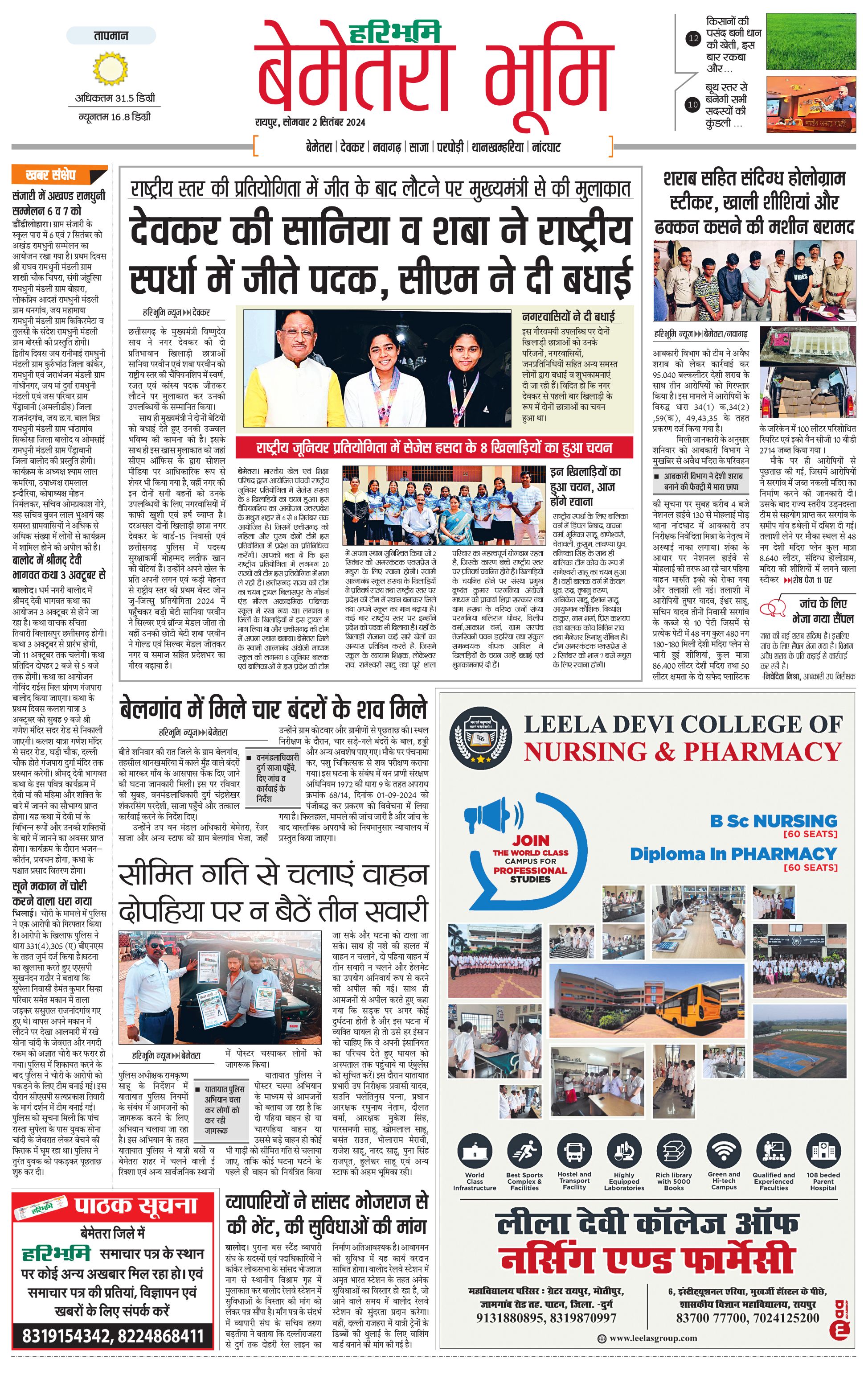 बेमेतरा भूमि - 02 Sep 2024 - - Page 1