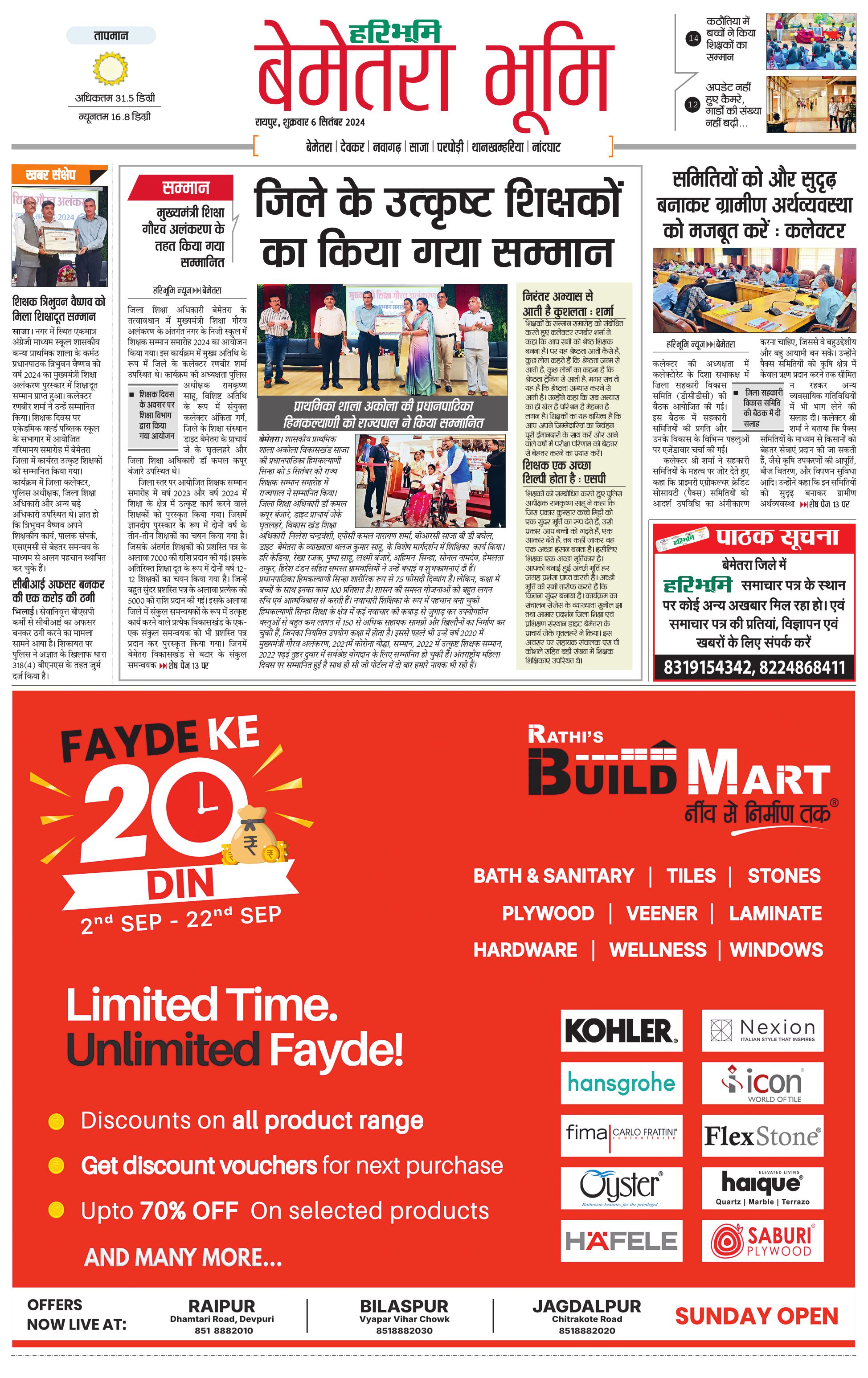 बेमेतरा भूमि - 06 Sep 2024 - - Page 1