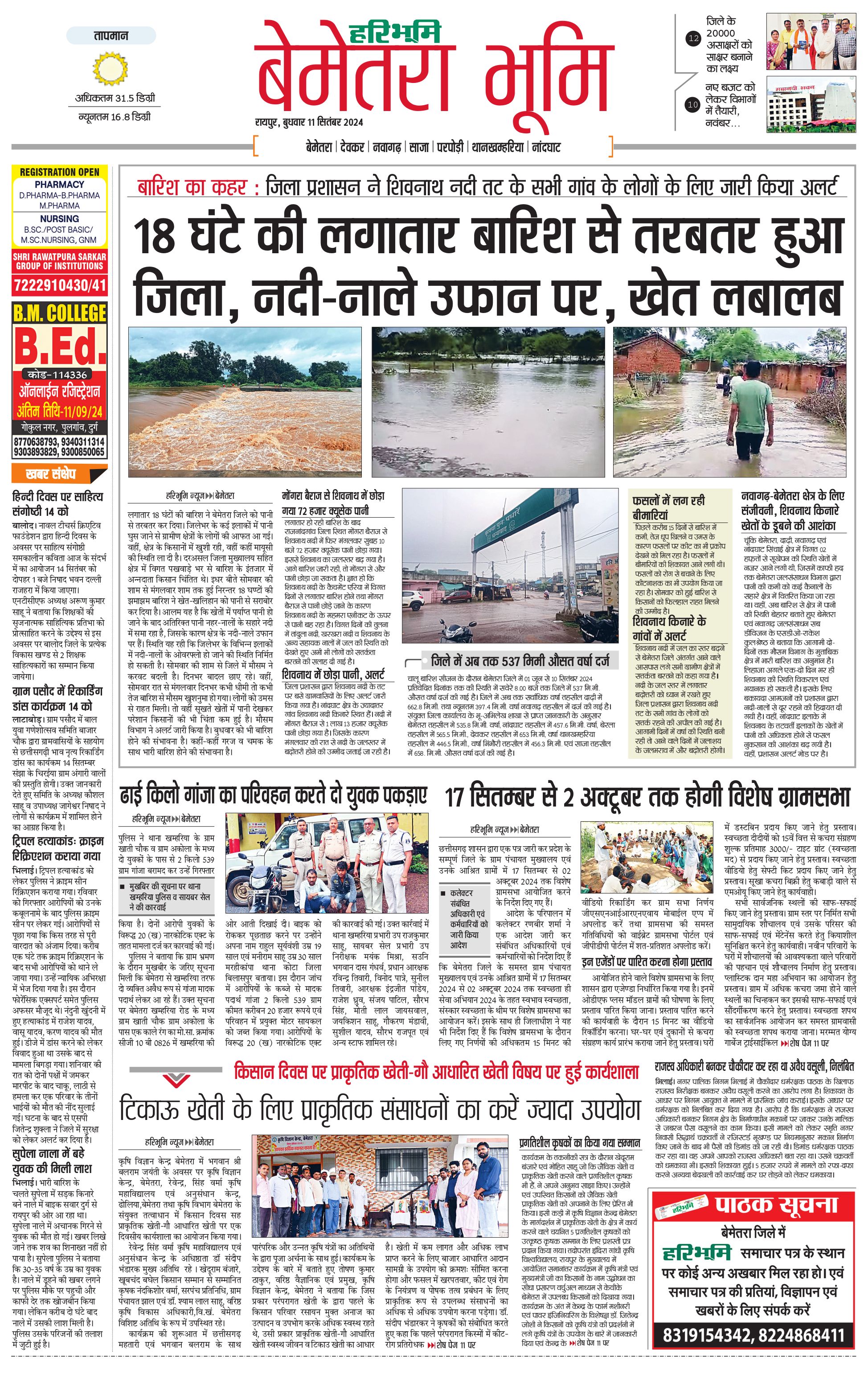 बेमेतरा भूमि - 11 Sep 2024 - - Page 1