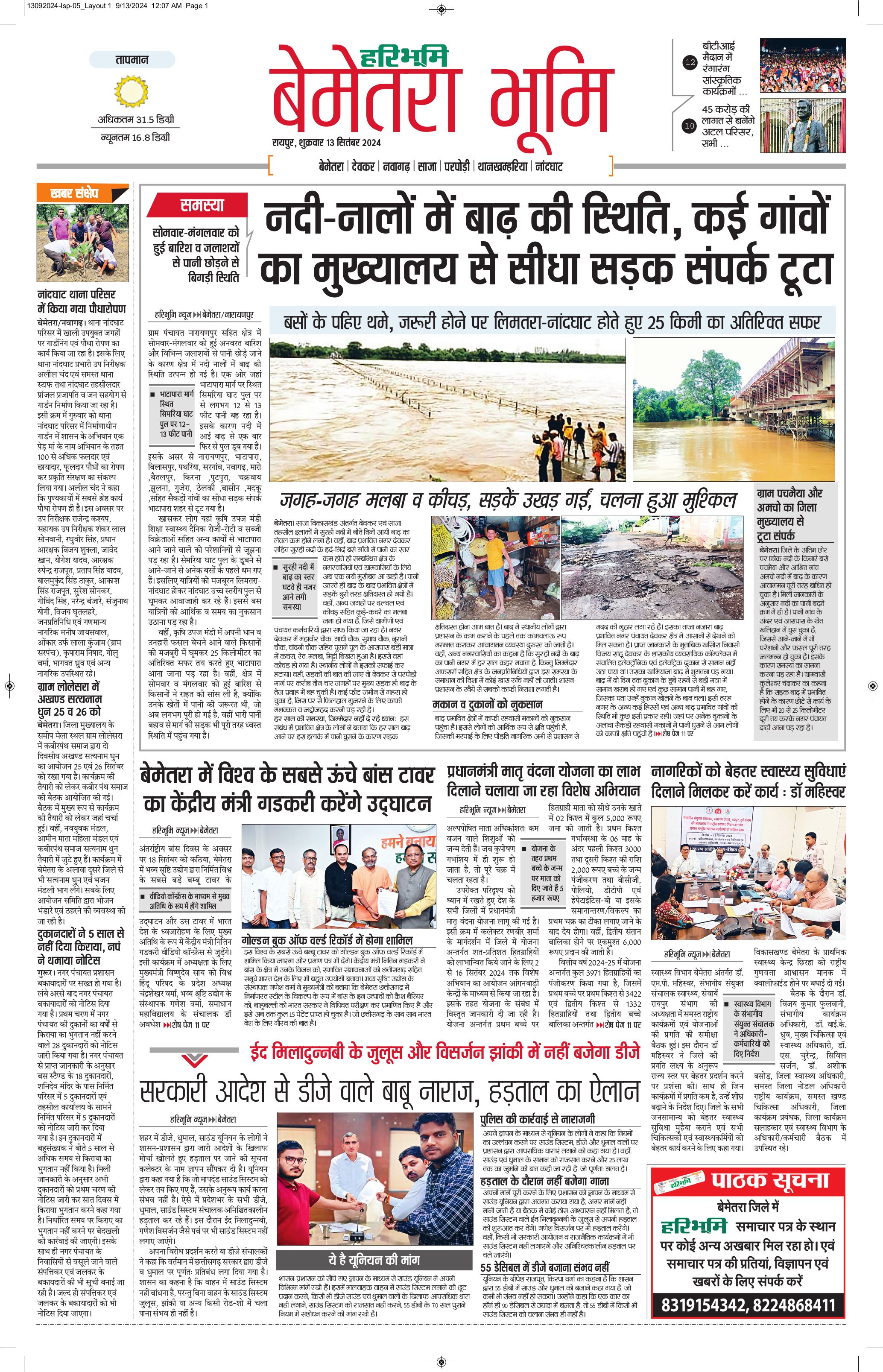 बेमेतरा भूमि - 13 Sep 2024 - - Page 1