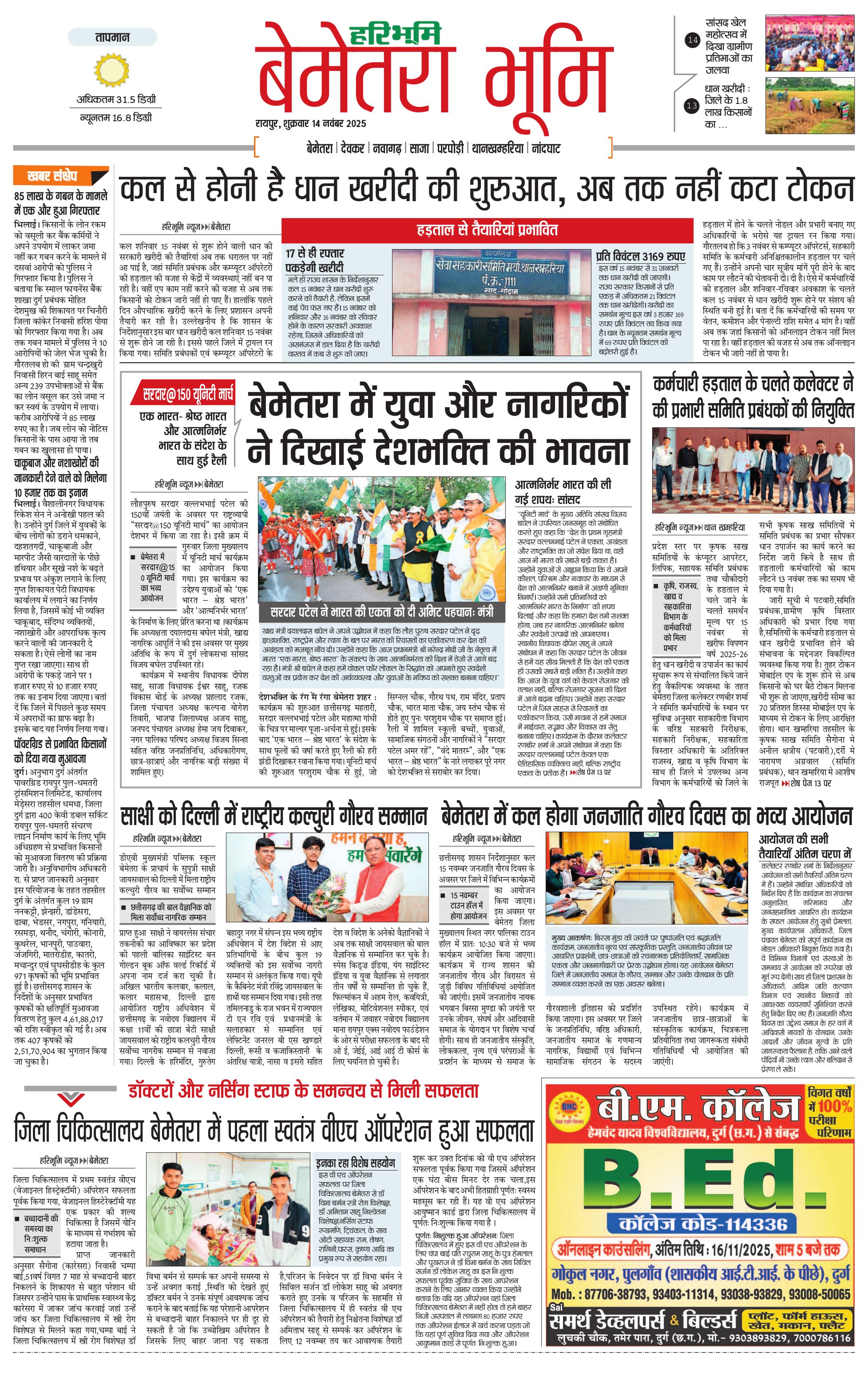 बेमेतरा भूमि - 14 Nov 2025 - - Page 1