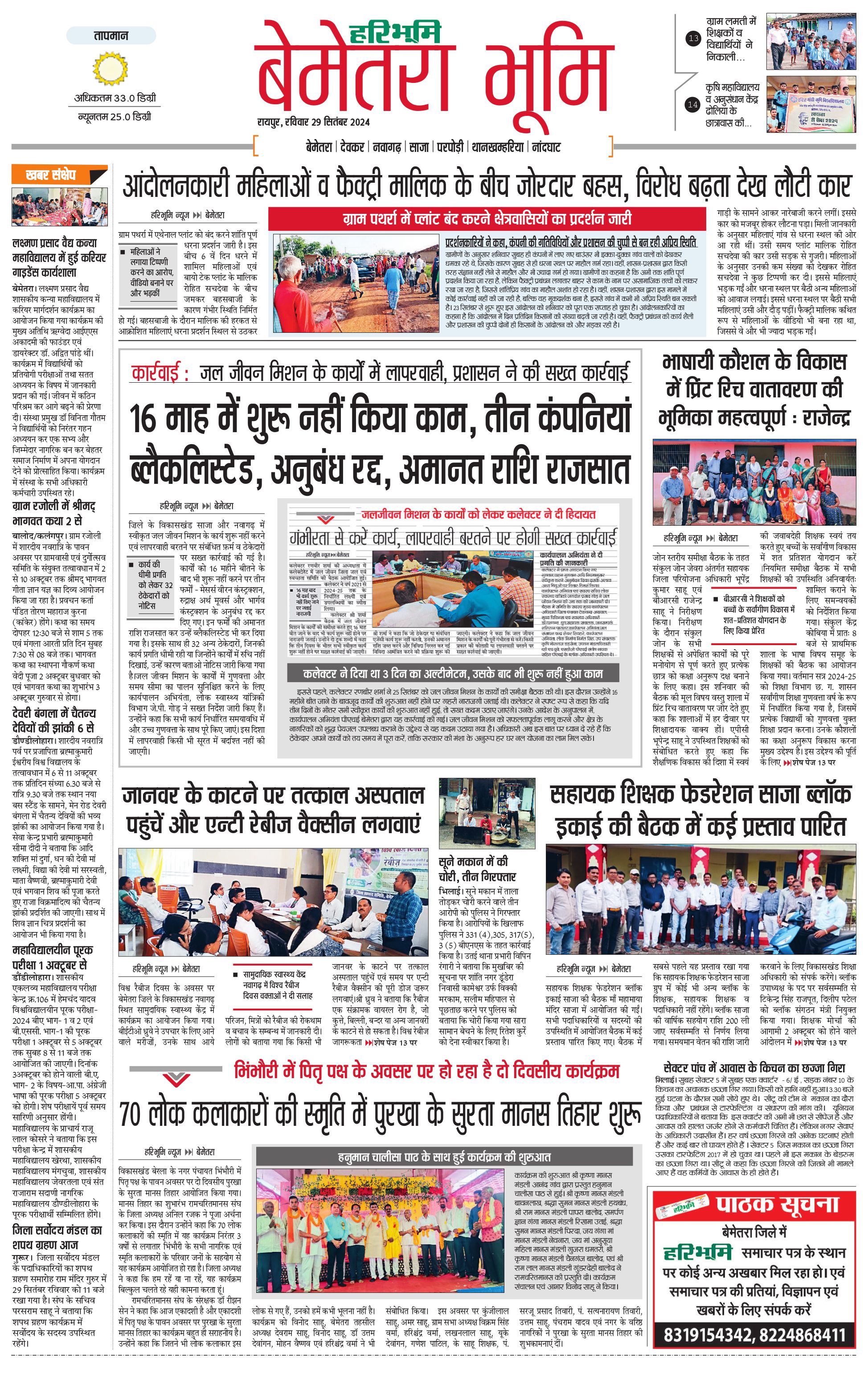 बेमेतरा भूमि - 29 Sep 2024 - - Page 1