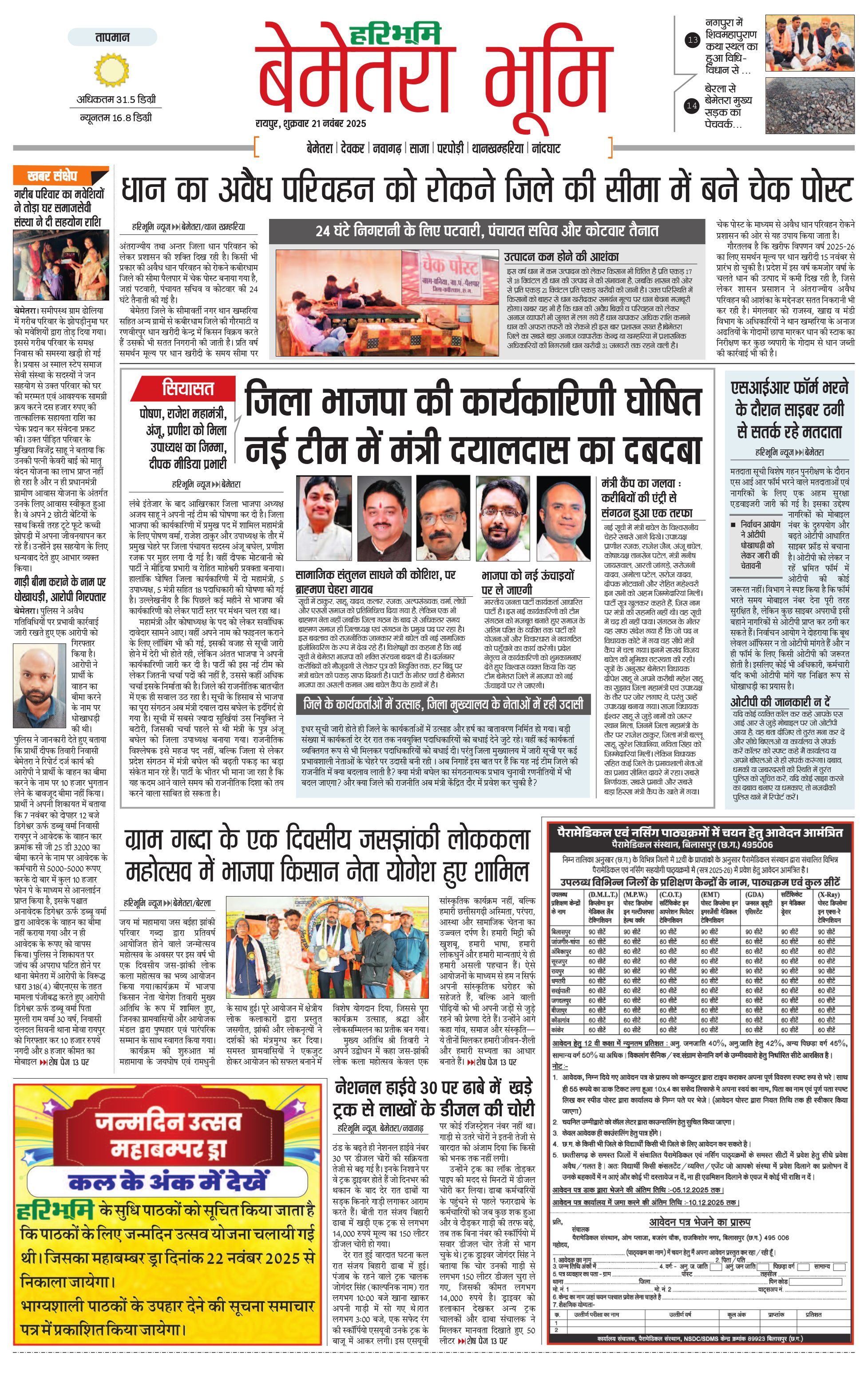 बेमेतरा भूमि - 21 Nov 2025 - - Page 1