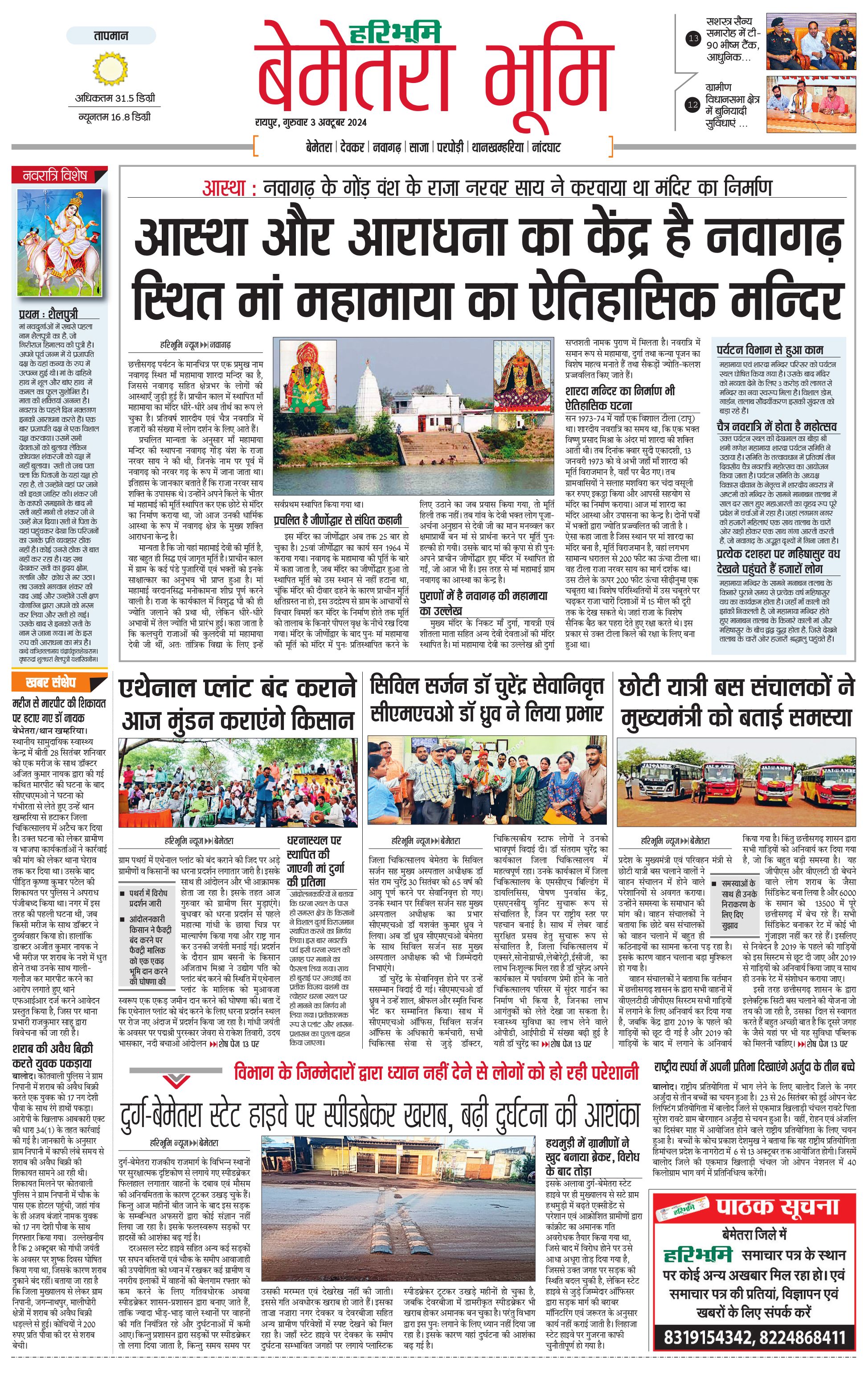 बेमेतरा भूमि - 03 Oct 2024 - - Page 1
