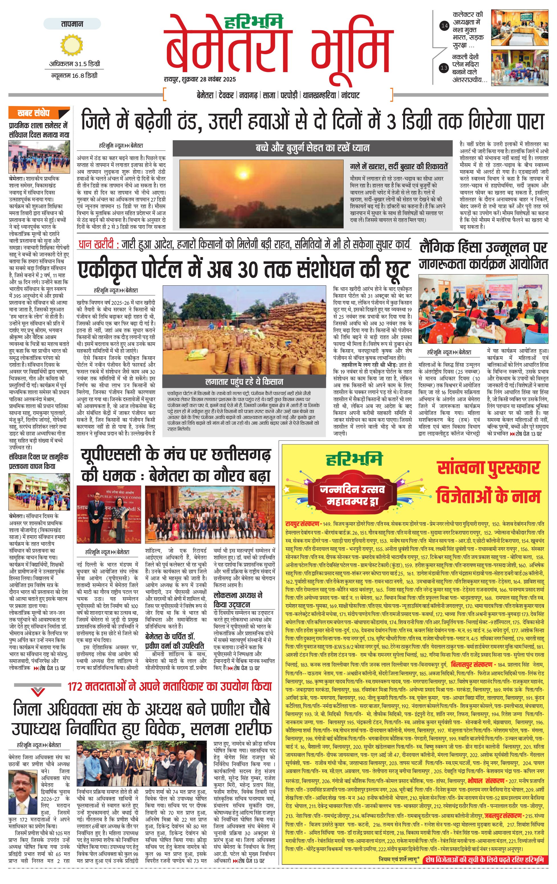 बेमेतरा भूमि - 28 Nov 2025 - - Page 1