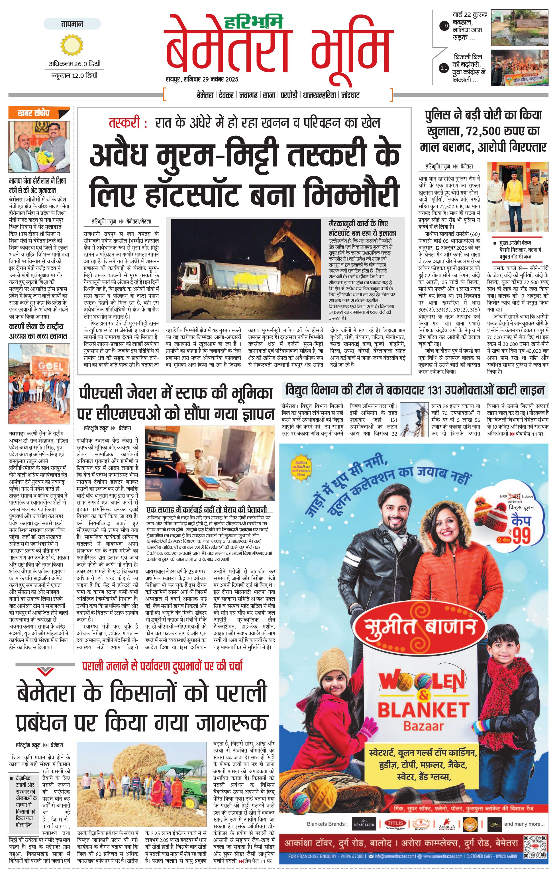 बेमेतरा भूमि - 29 Nov 2025 - - Page 1