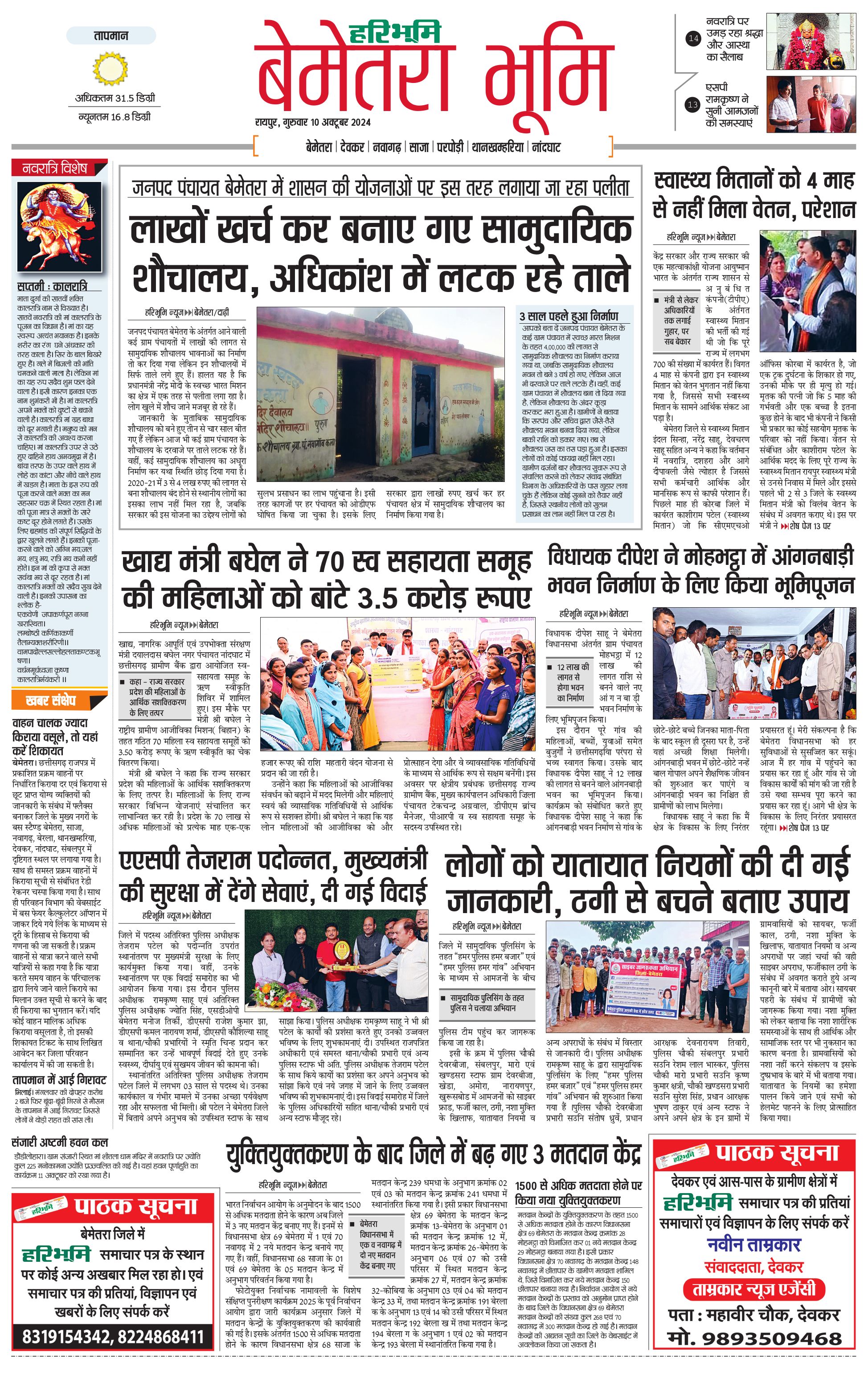 बेमेतरा भूमि - 10 Oct 2024 - - Page 1