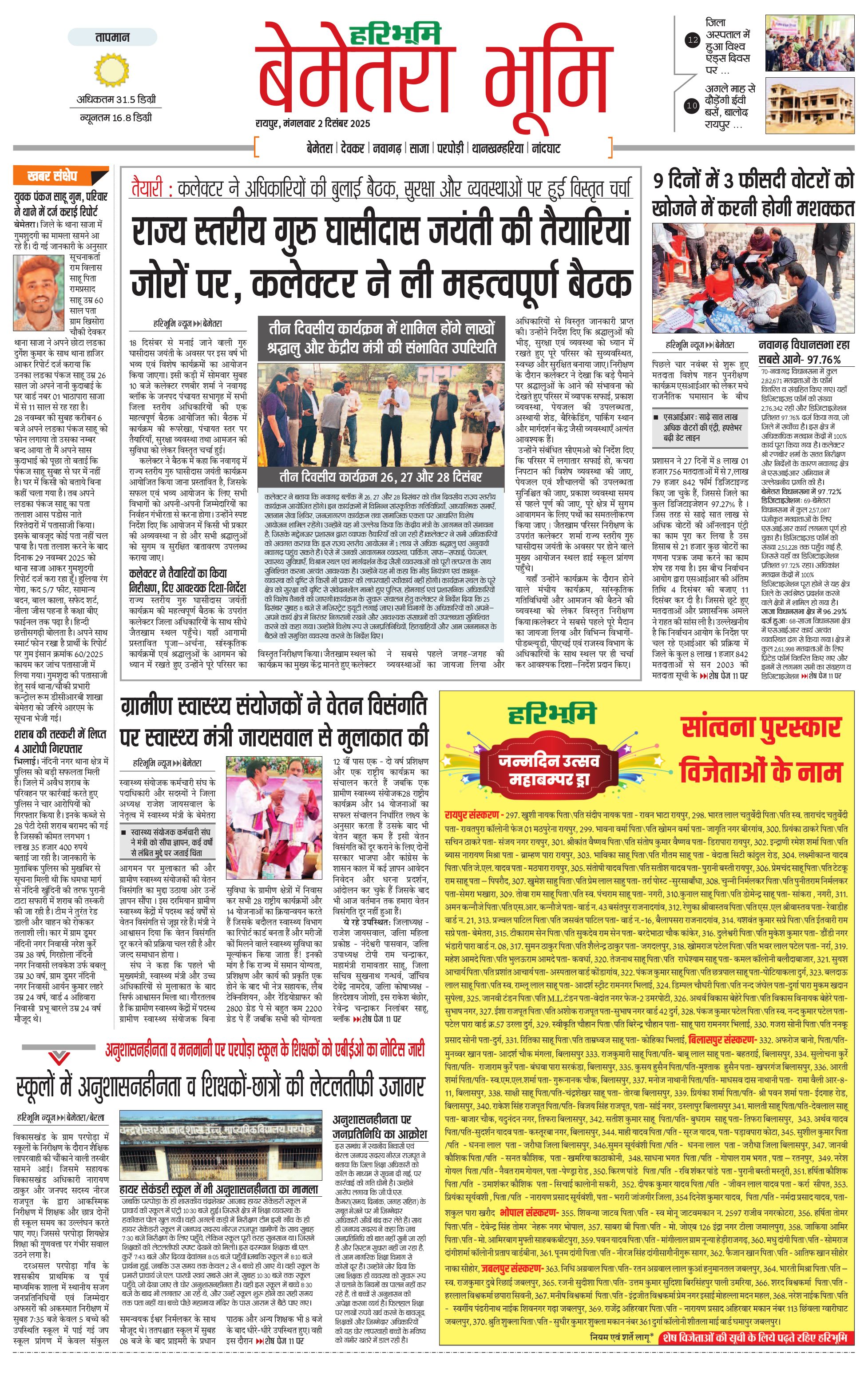 बेमेतरा भूमि - 02 Dec 2025 - - Page 1