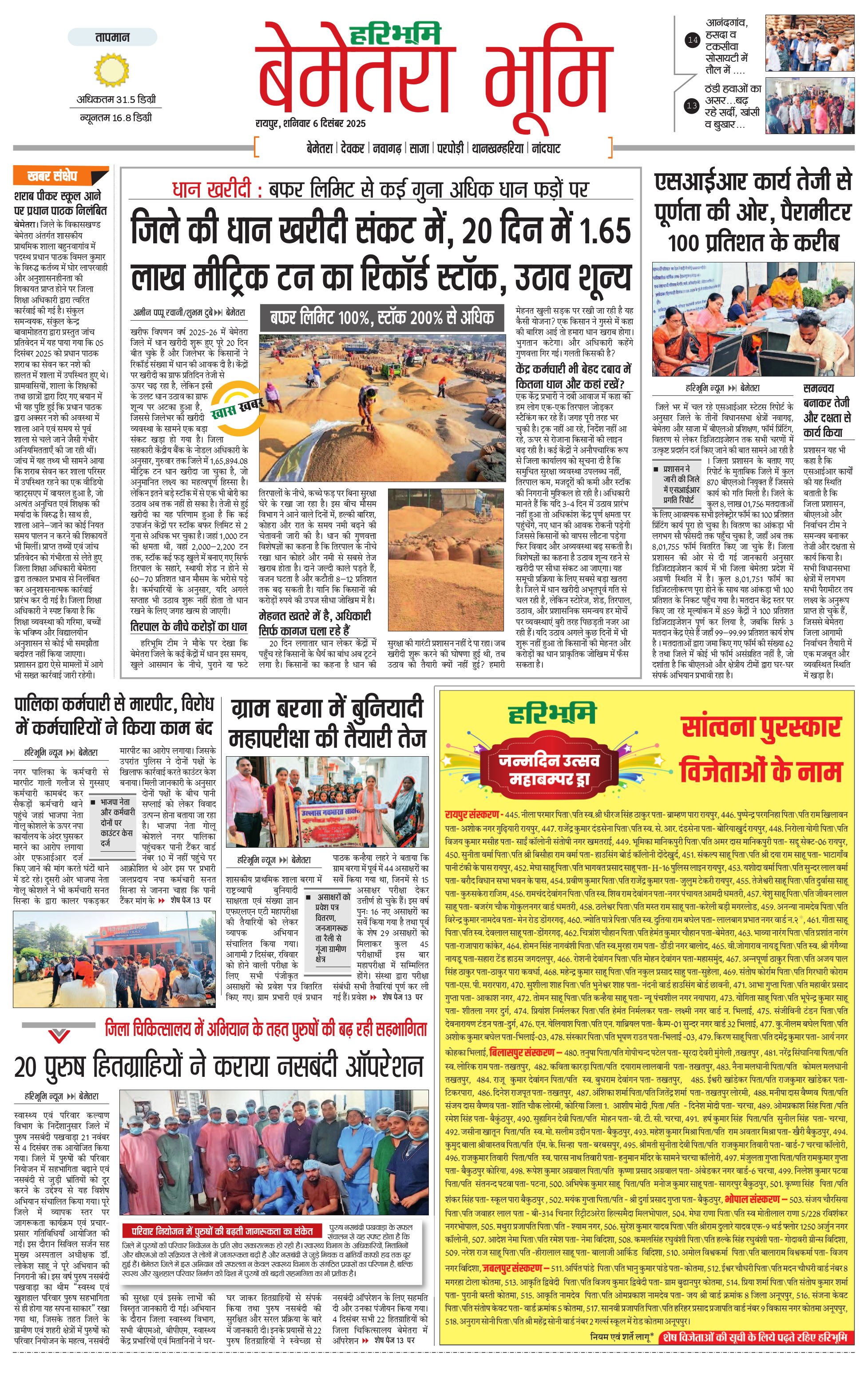 बेमेतरा भूमि - 06 Dec 2025 - - Page 1