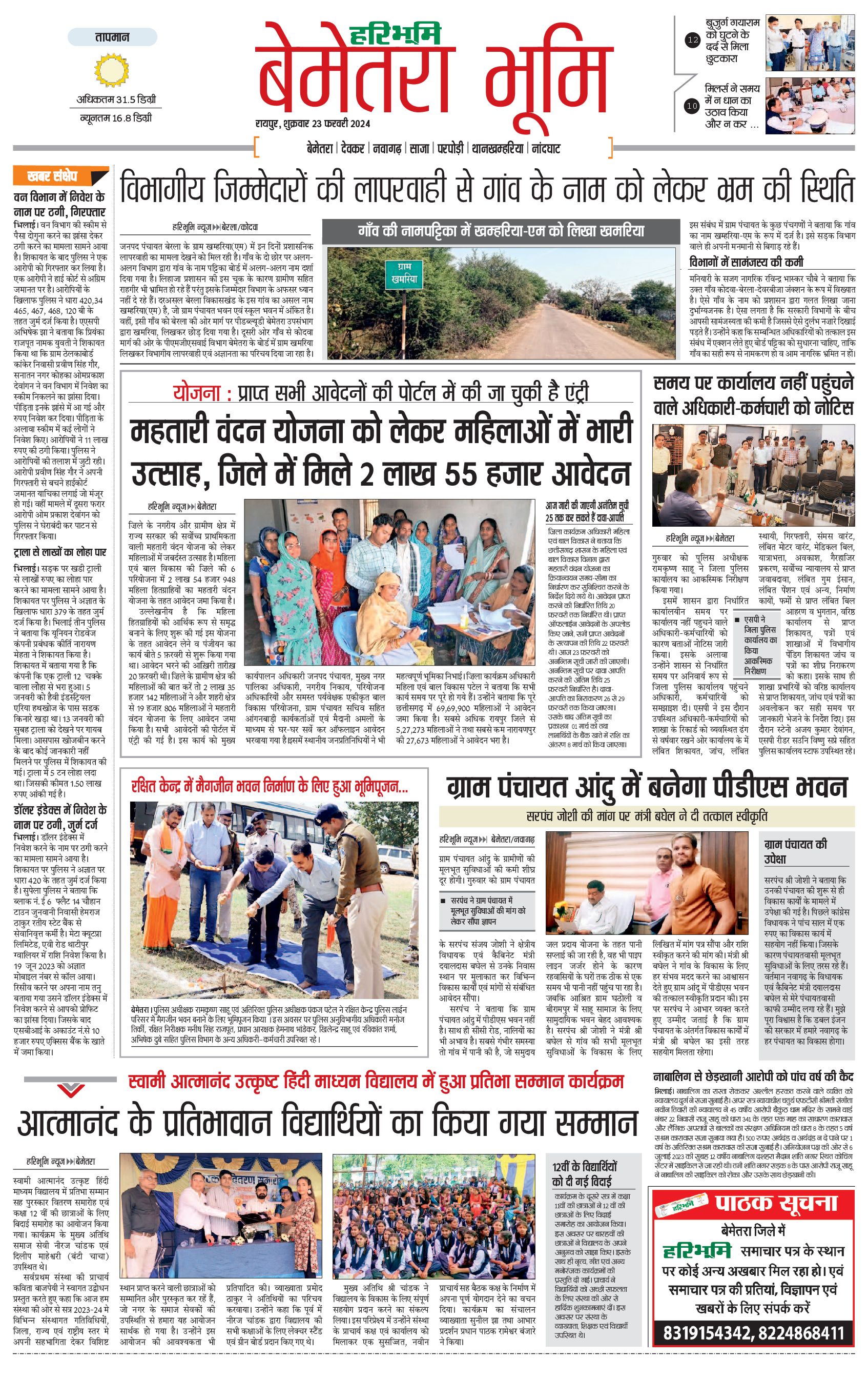 बेमेतरा भूमि - 23 Feb 2024 - - Page 1