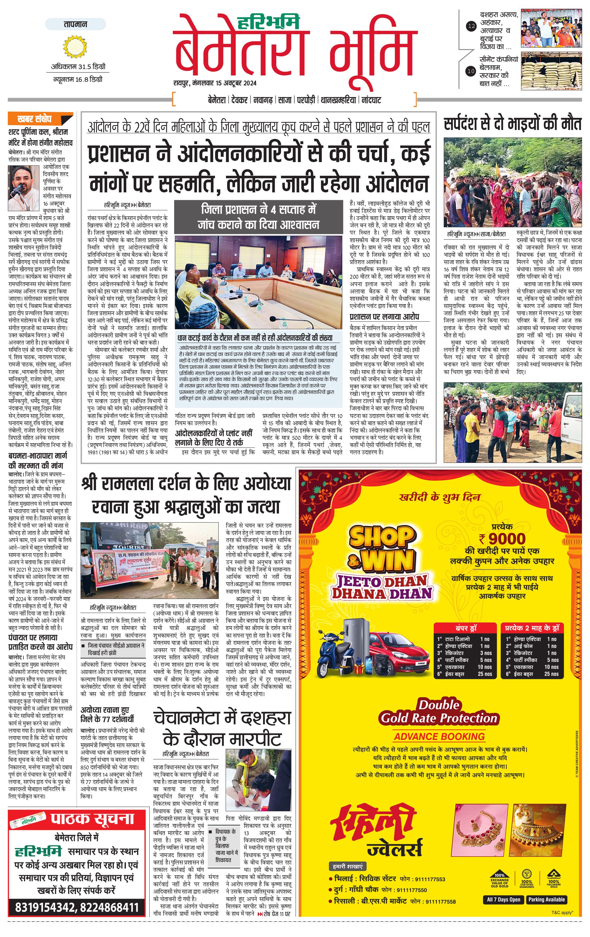 बेमेतरा भूमि - 15 Oct 2024 - - Page 1