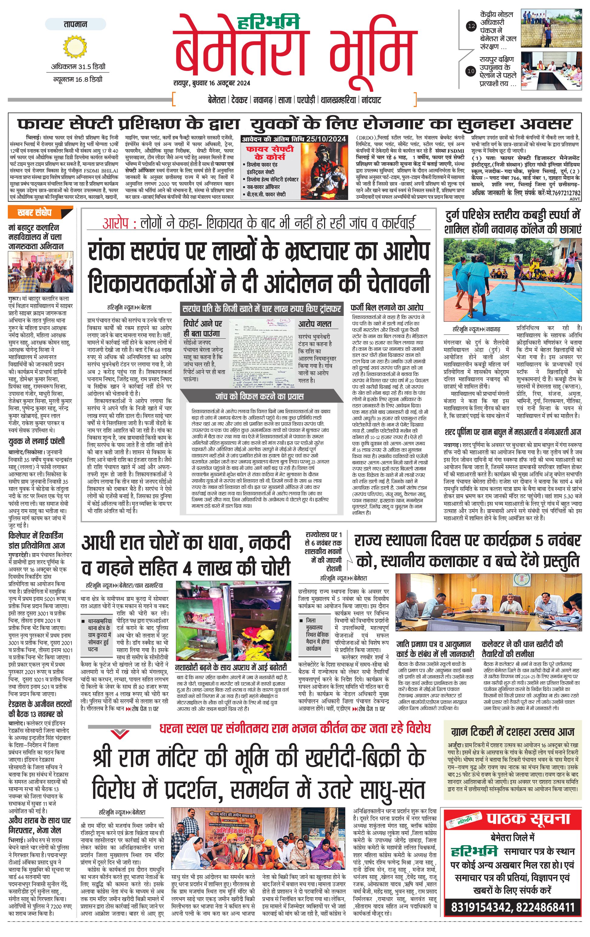 बेमेतरा भूमि - 16 Oct 2024 - - Page 1
