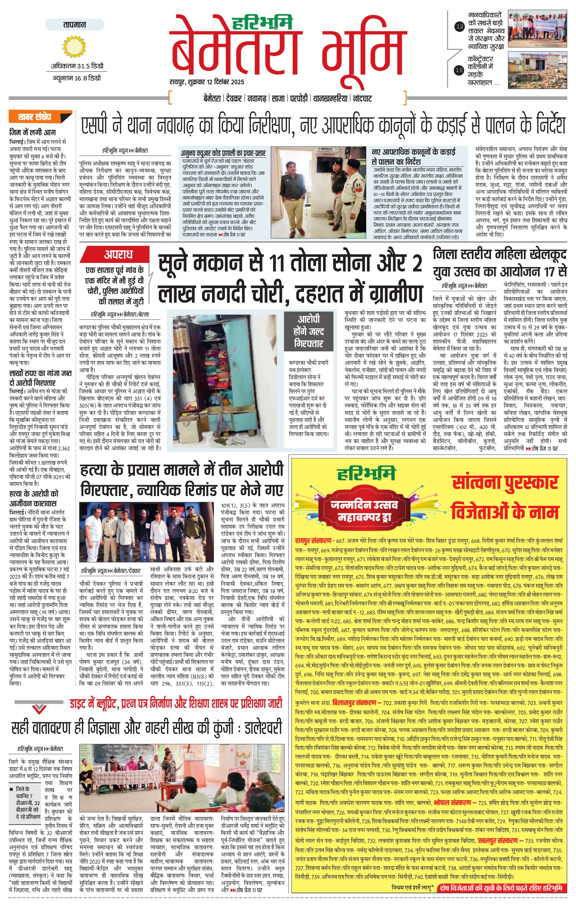 बेमेतरा भूमि - 12 Dec 2025 - - Page 1