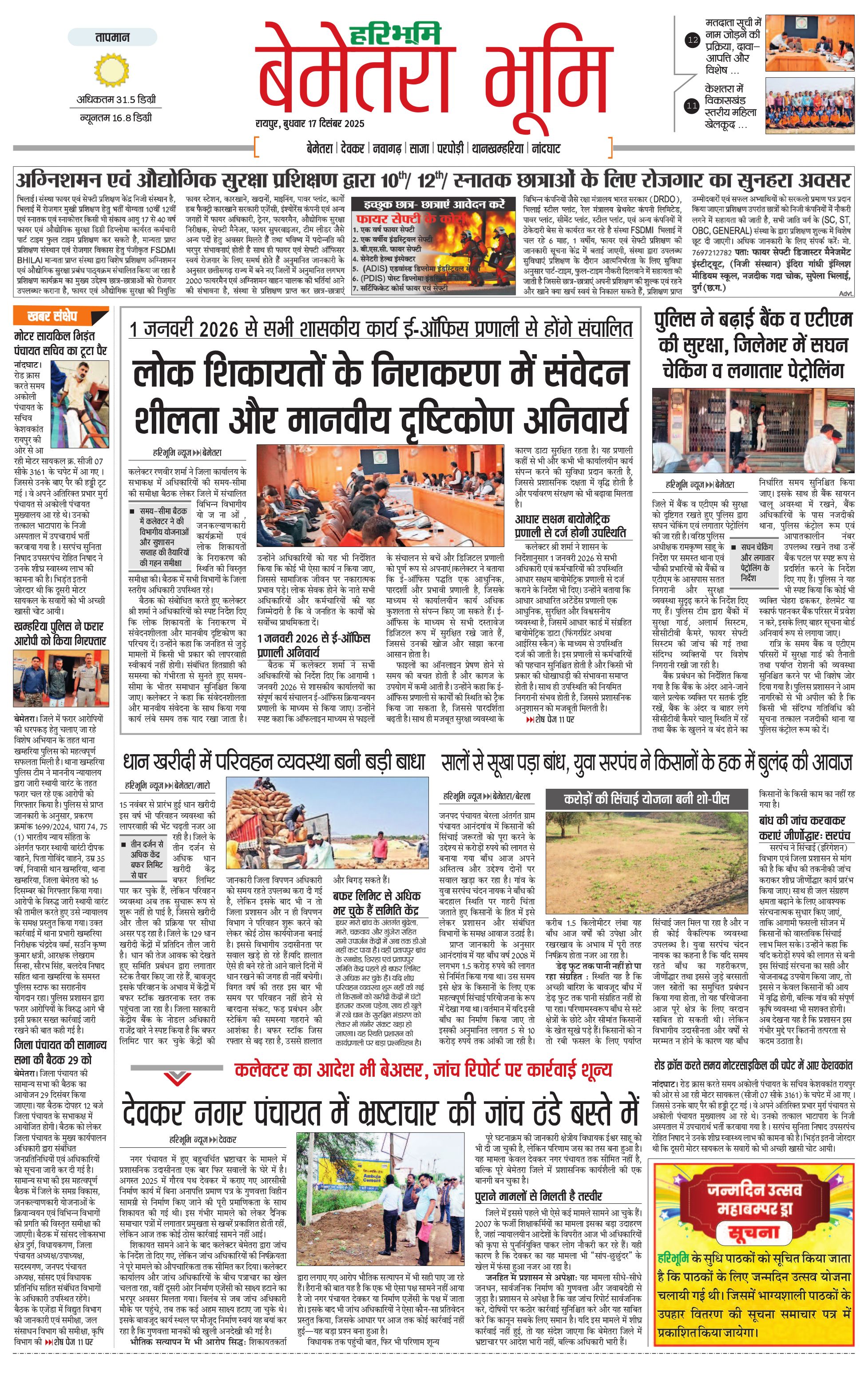 बेमेतरा भूमि - 17 Dec 2025 - - Page 1