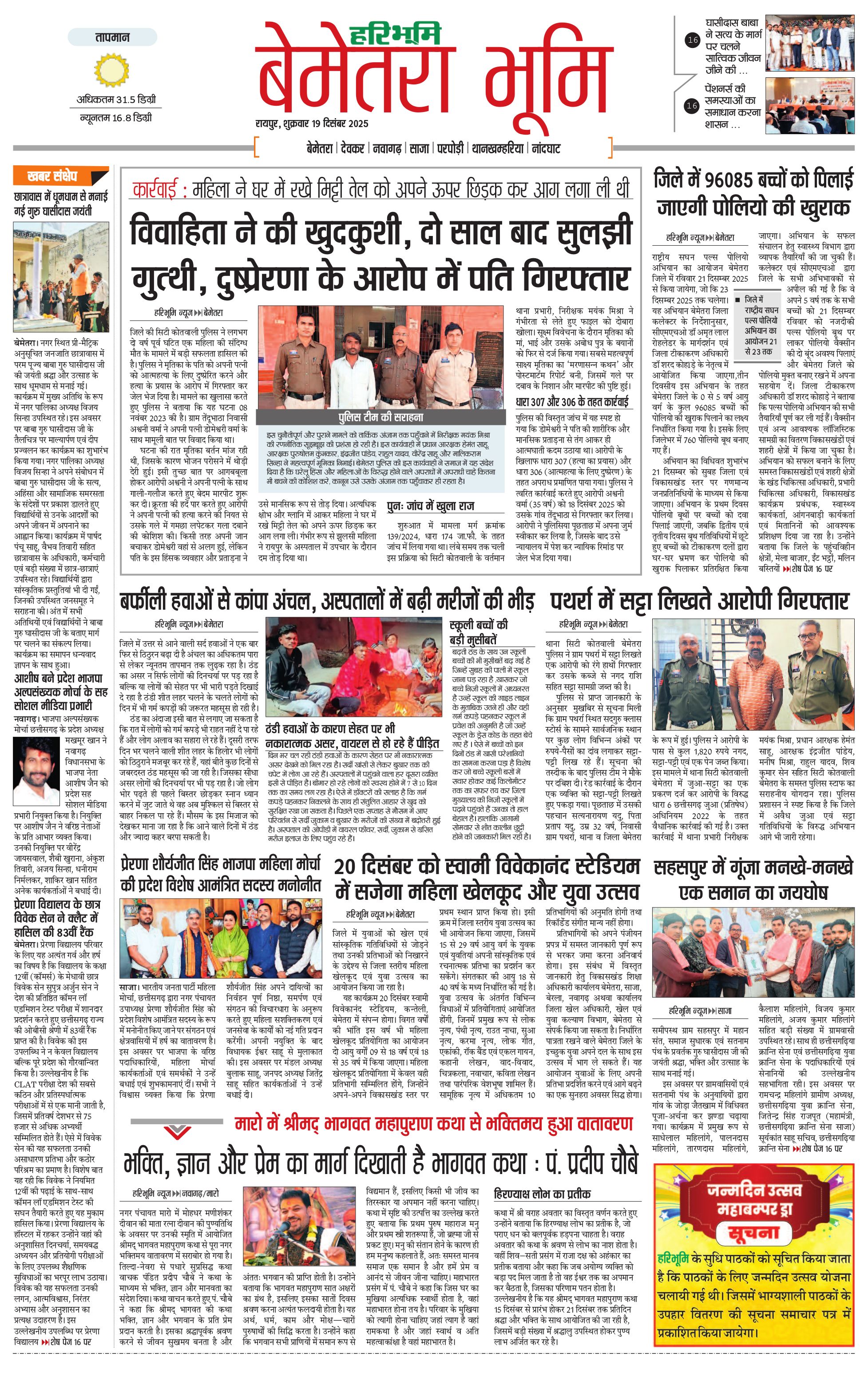 बेमेतरा भूमि - 19 Dec 2025 - - Page 1
