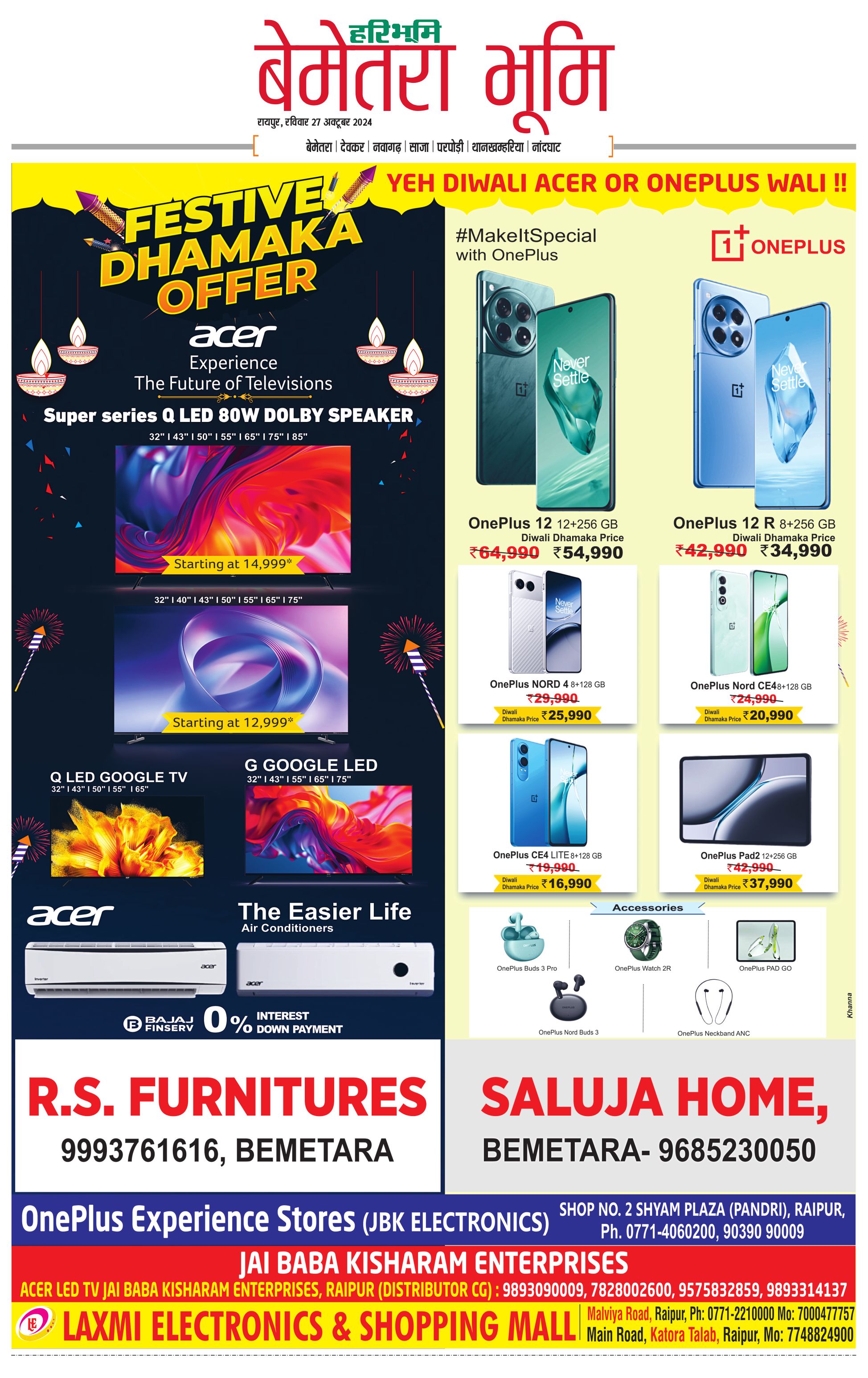 बेमेतरा भूमि - 27 Oct 2024 - - Page 1