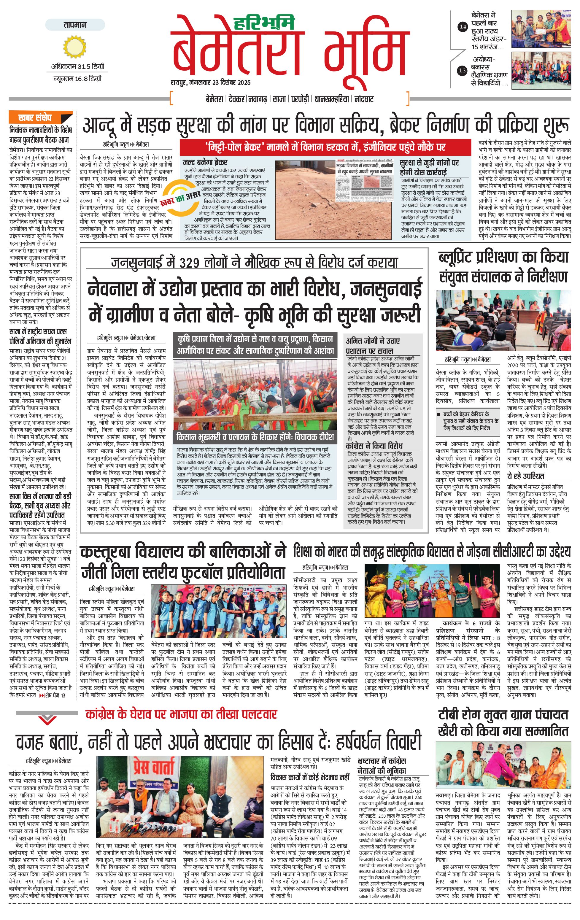 बेमेतरा भूमि - 23 Dec 2025 - - Page 1