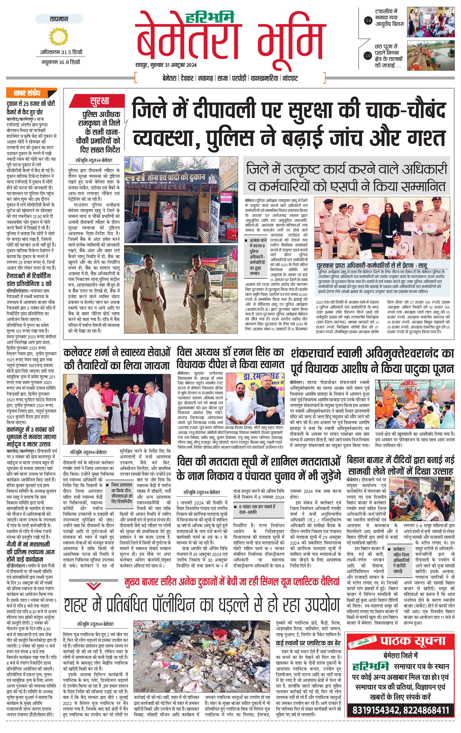 बेमेतरा भूमि - 31 Oct 2024 - - Page 1