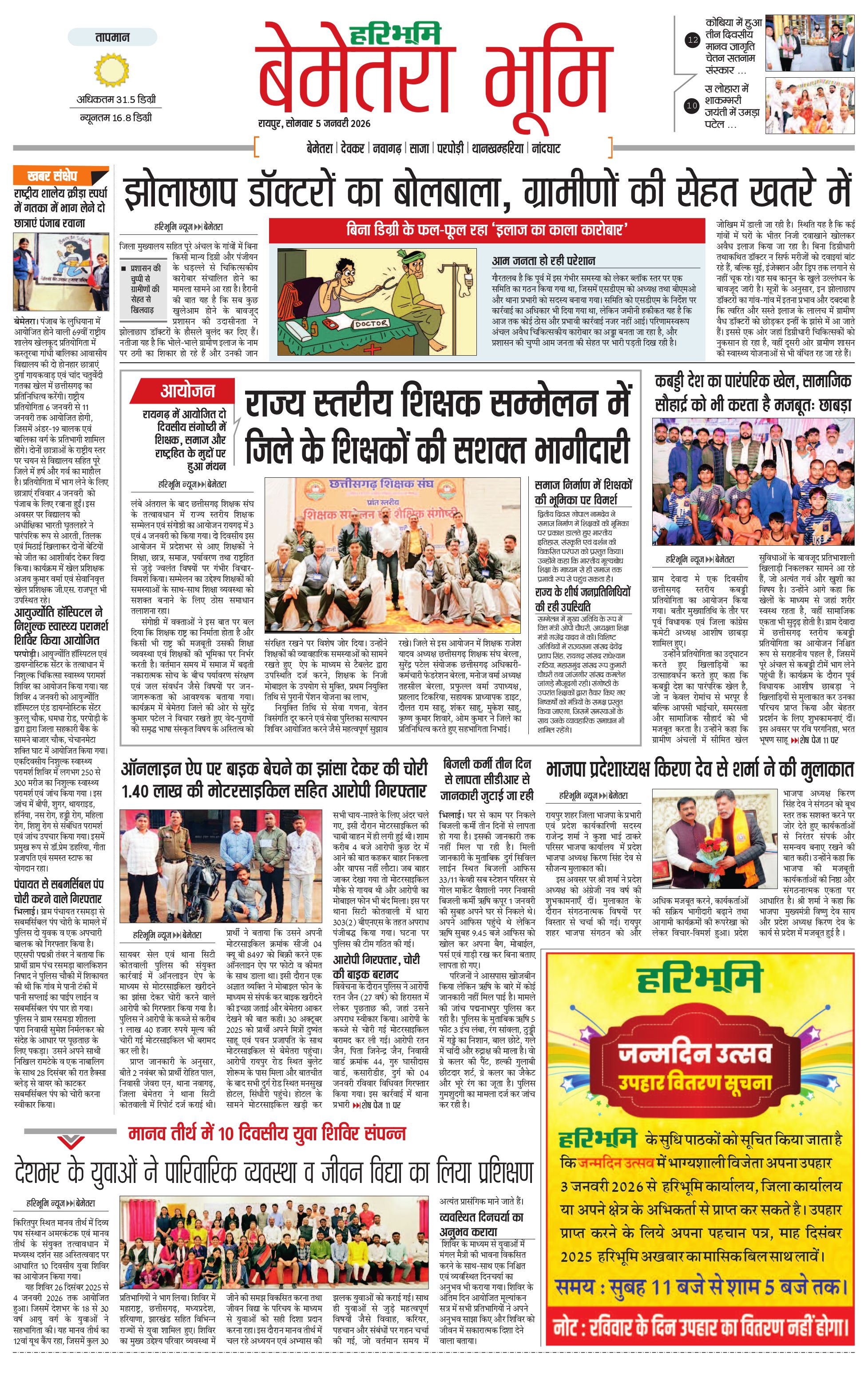 बेमेतरा भूमि - 05 Jan 2026 - - Page 1