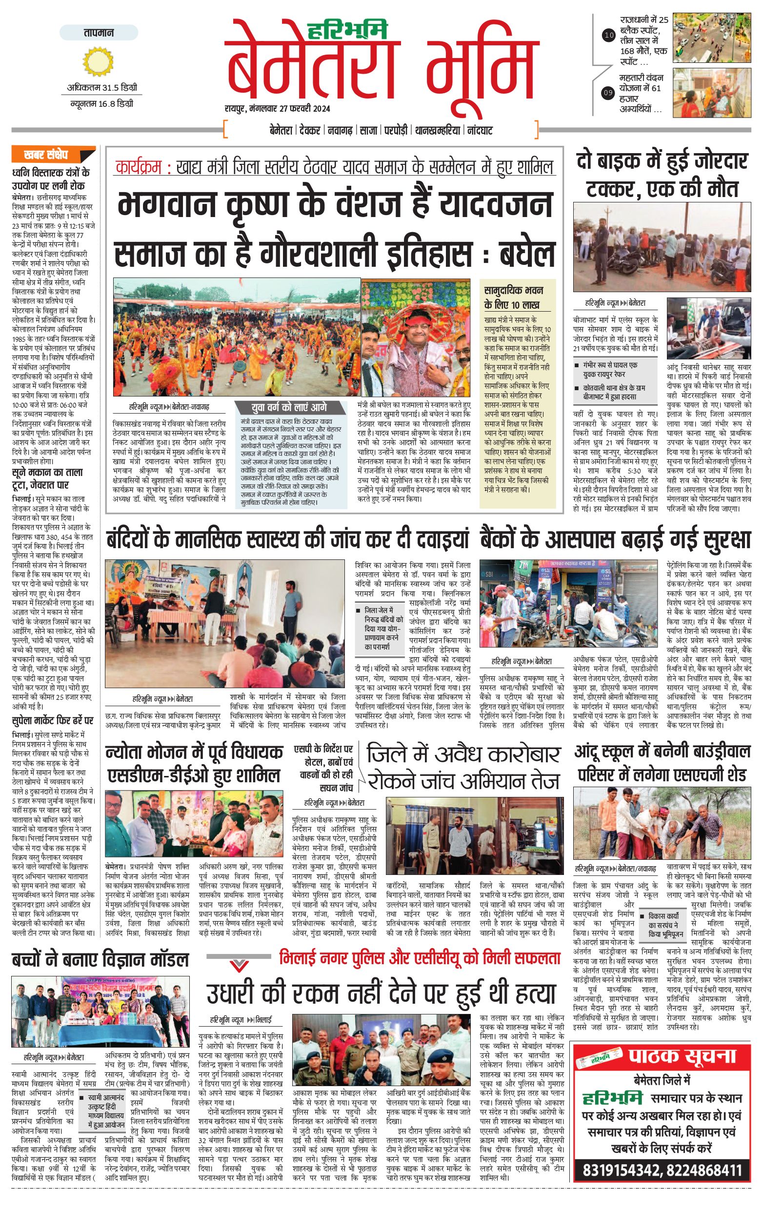 बेमेतरा भूमि - 27 Feb 2024 - - Page 1