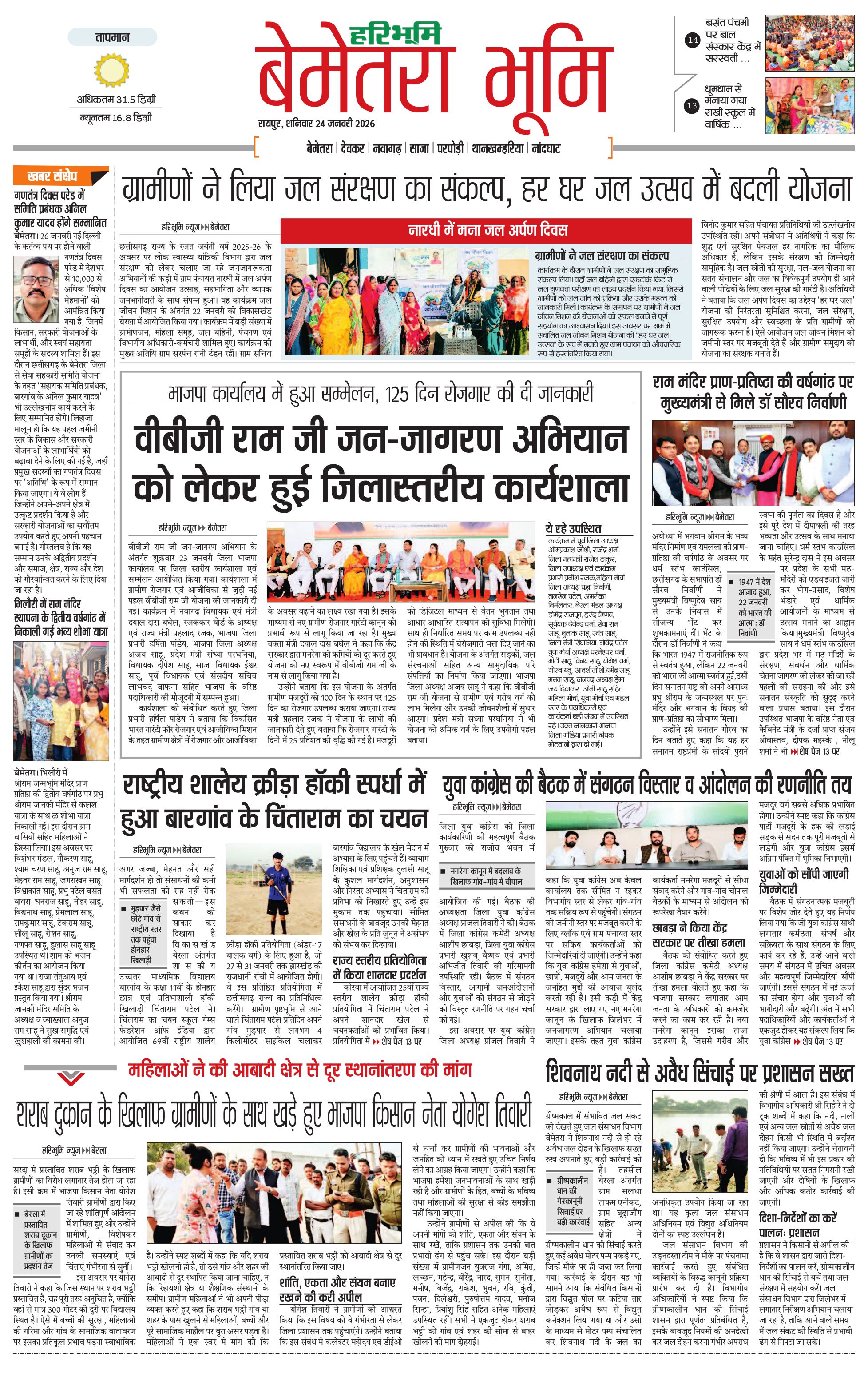 बेमेतरा भूमि - 24 Jan 2026 - - Page 1