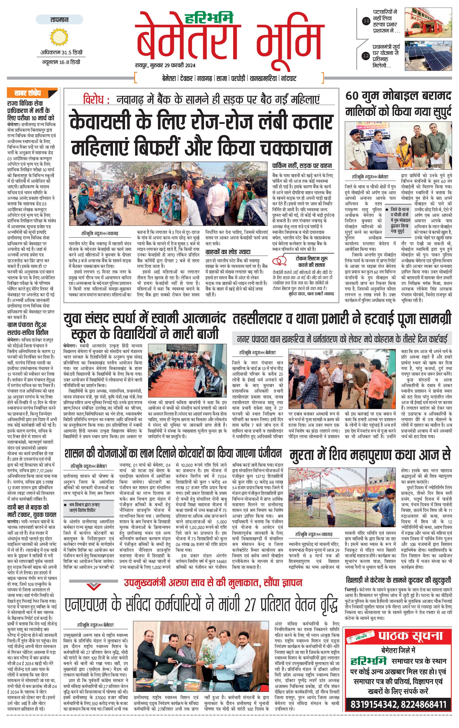 बेमेतरा भूमि - 29 Feb 2024 - - Page 1