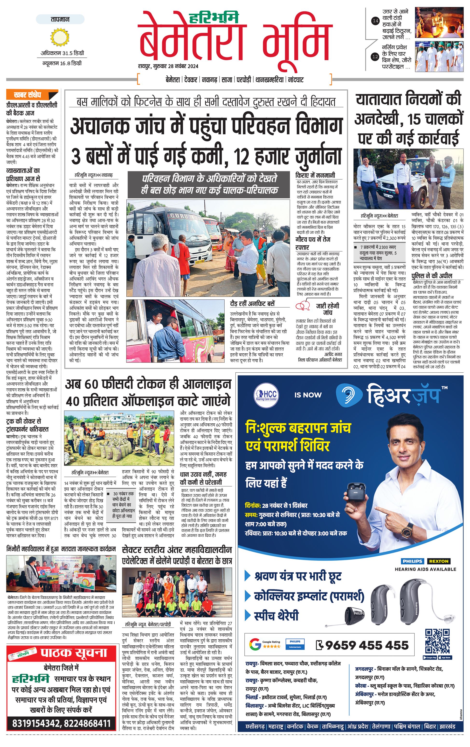 बेमेतरा भूमि - 28 Nov 2024 - - Page 1