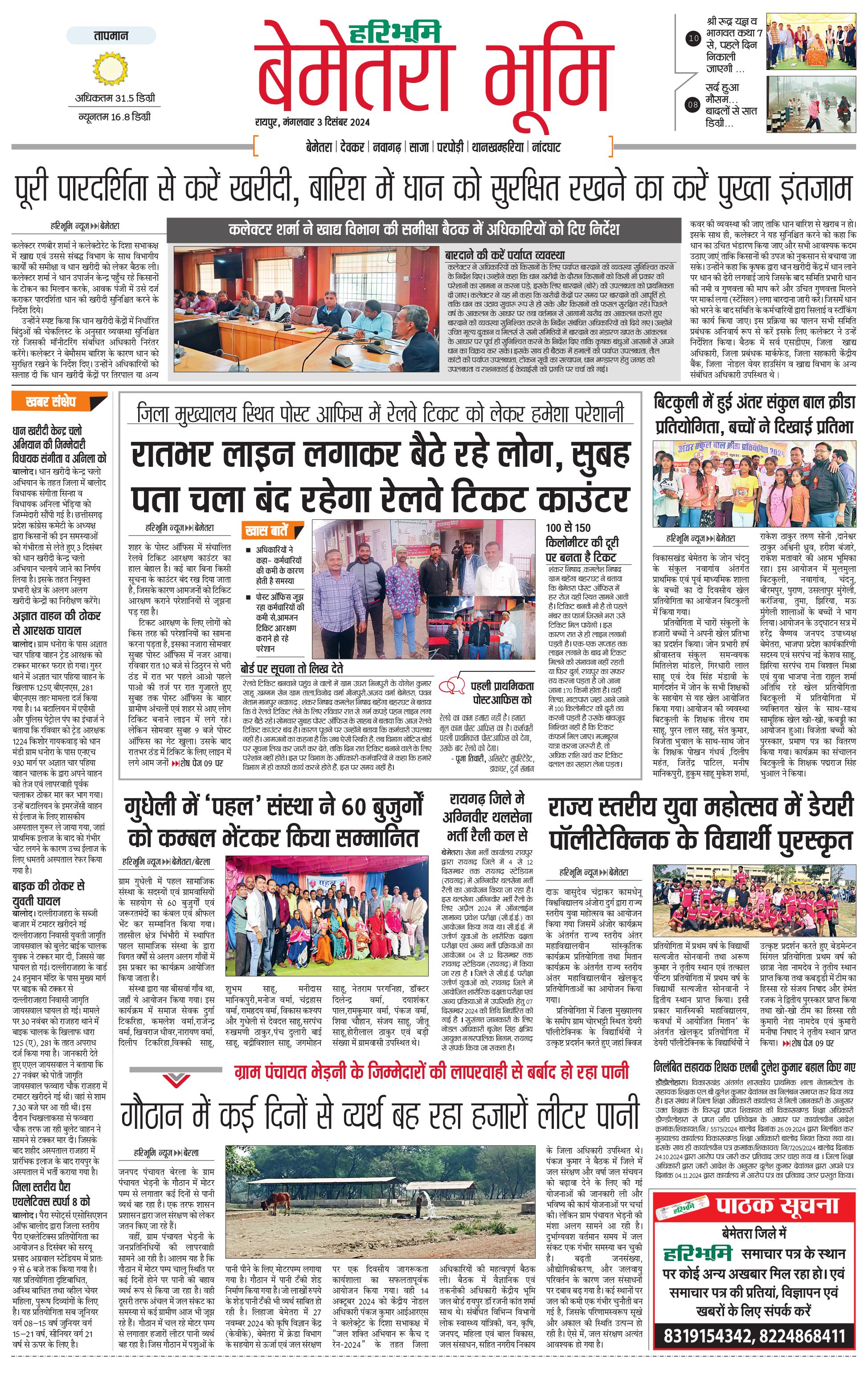 बेमेतरा भूमि - 03 Dec 2024 - - Page 1