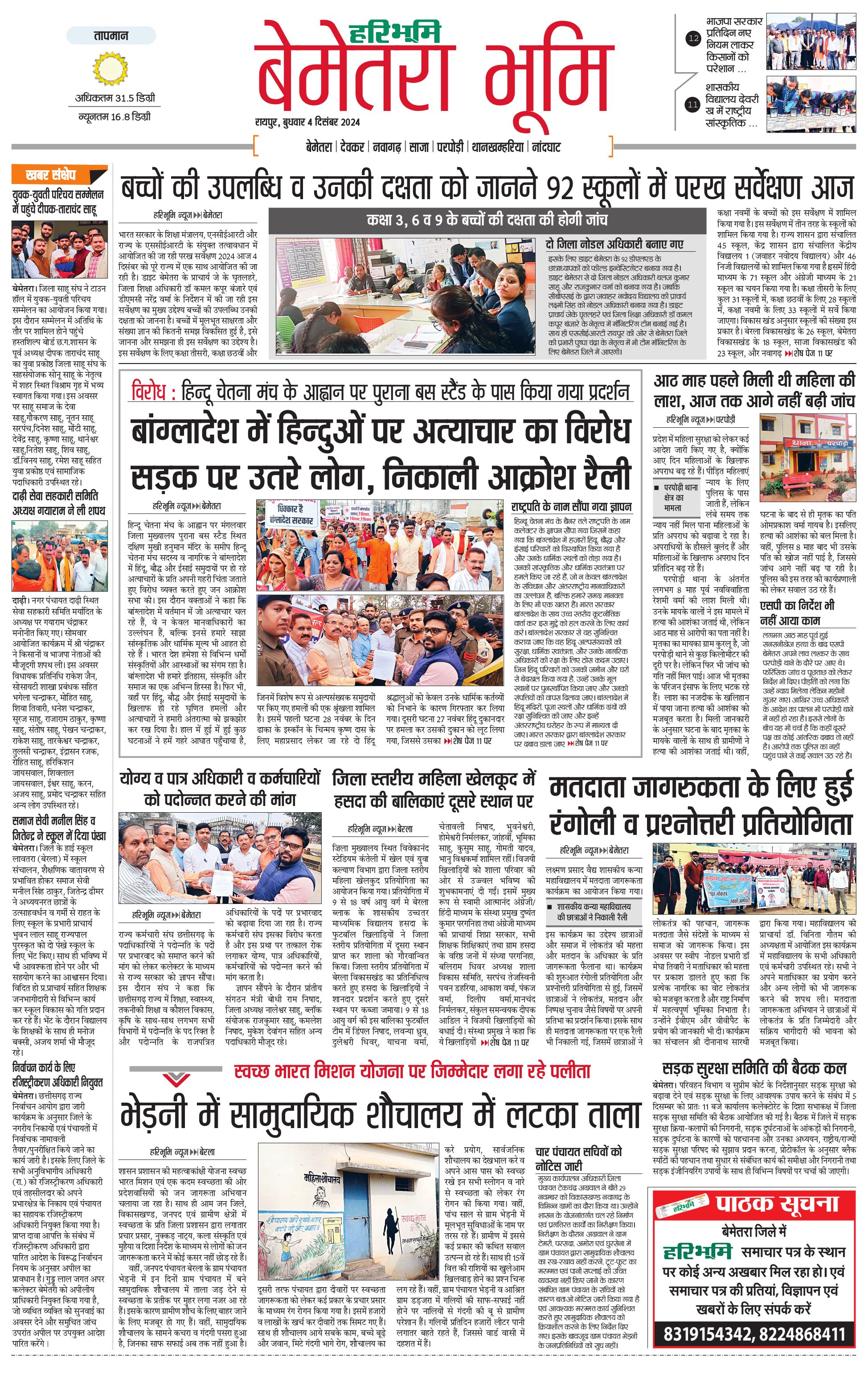 बेमेतरा भूमि - 04 Dec 2024 - - Page 1