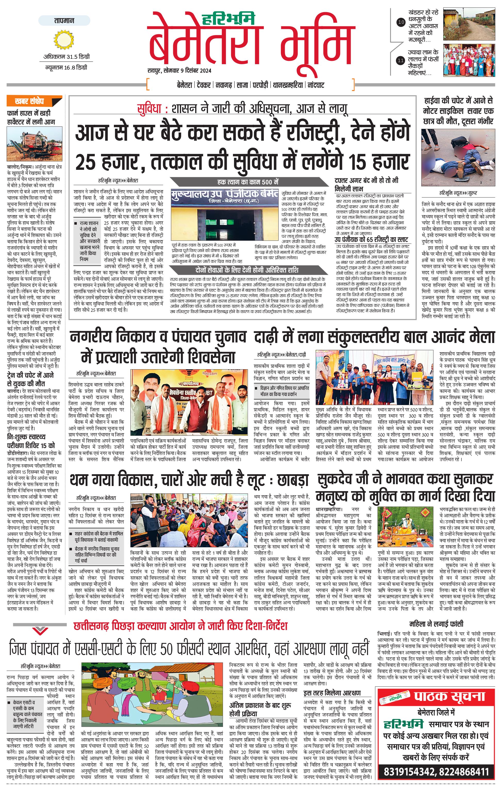 बेमेतरा भूमि - 09 Dec 2024 - - Page 1