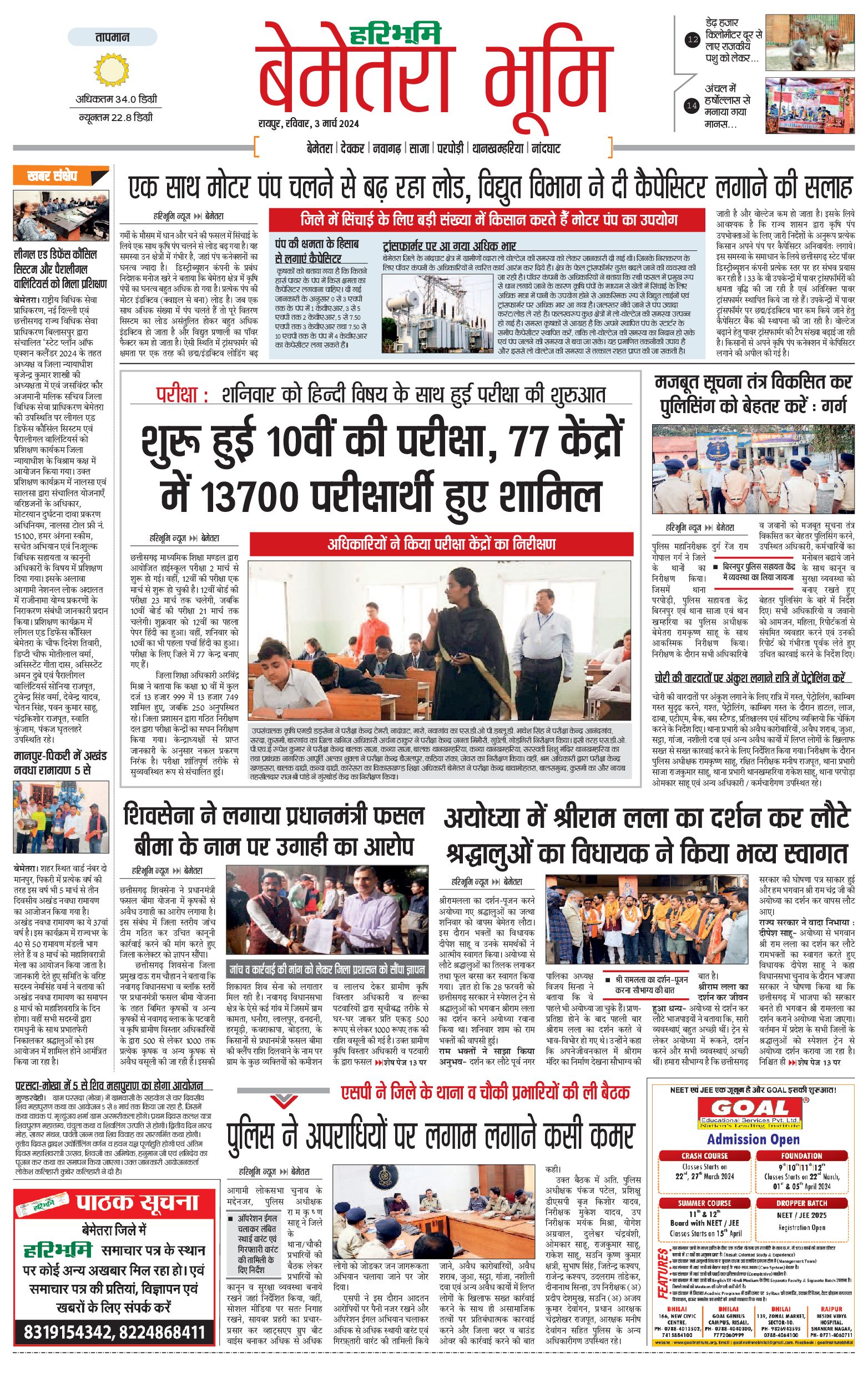 बेमेतरा भूमि - 03 Mar 2024 - - Page 1