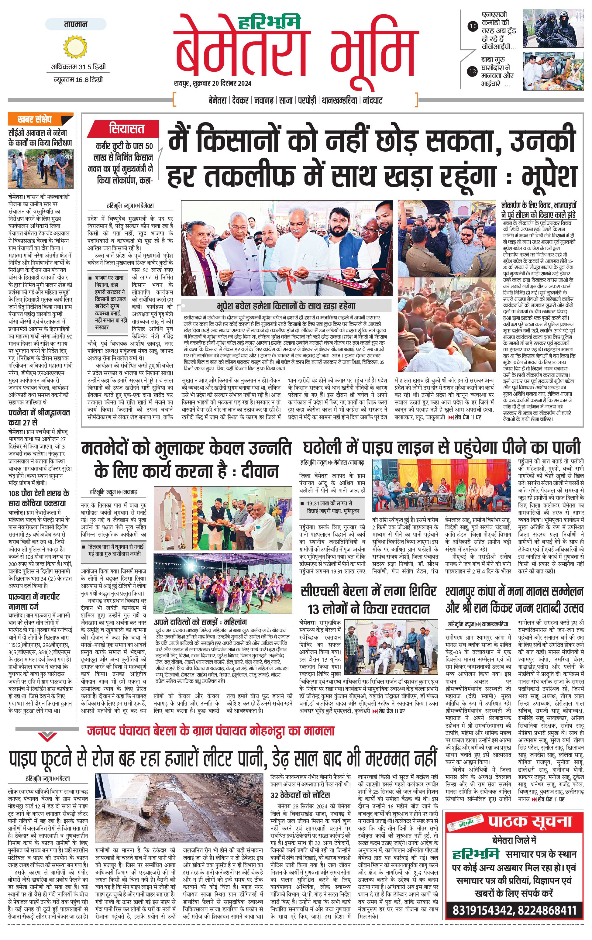 बेमेतरा भूमि - 20 Dec 2024 - - Page 1
