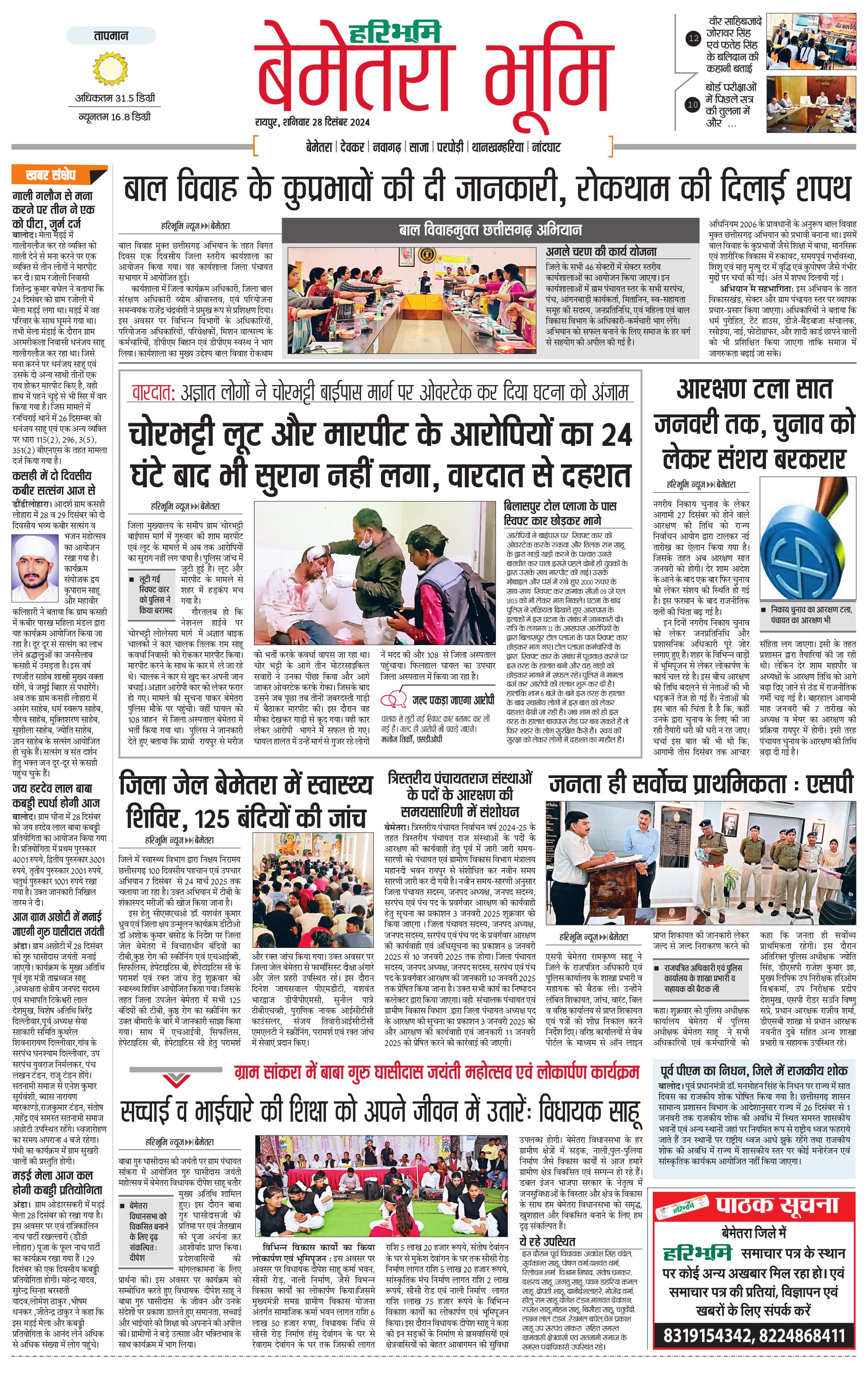 बेमेतरा भूमि - 28 Dec 2024 - - Page 1
