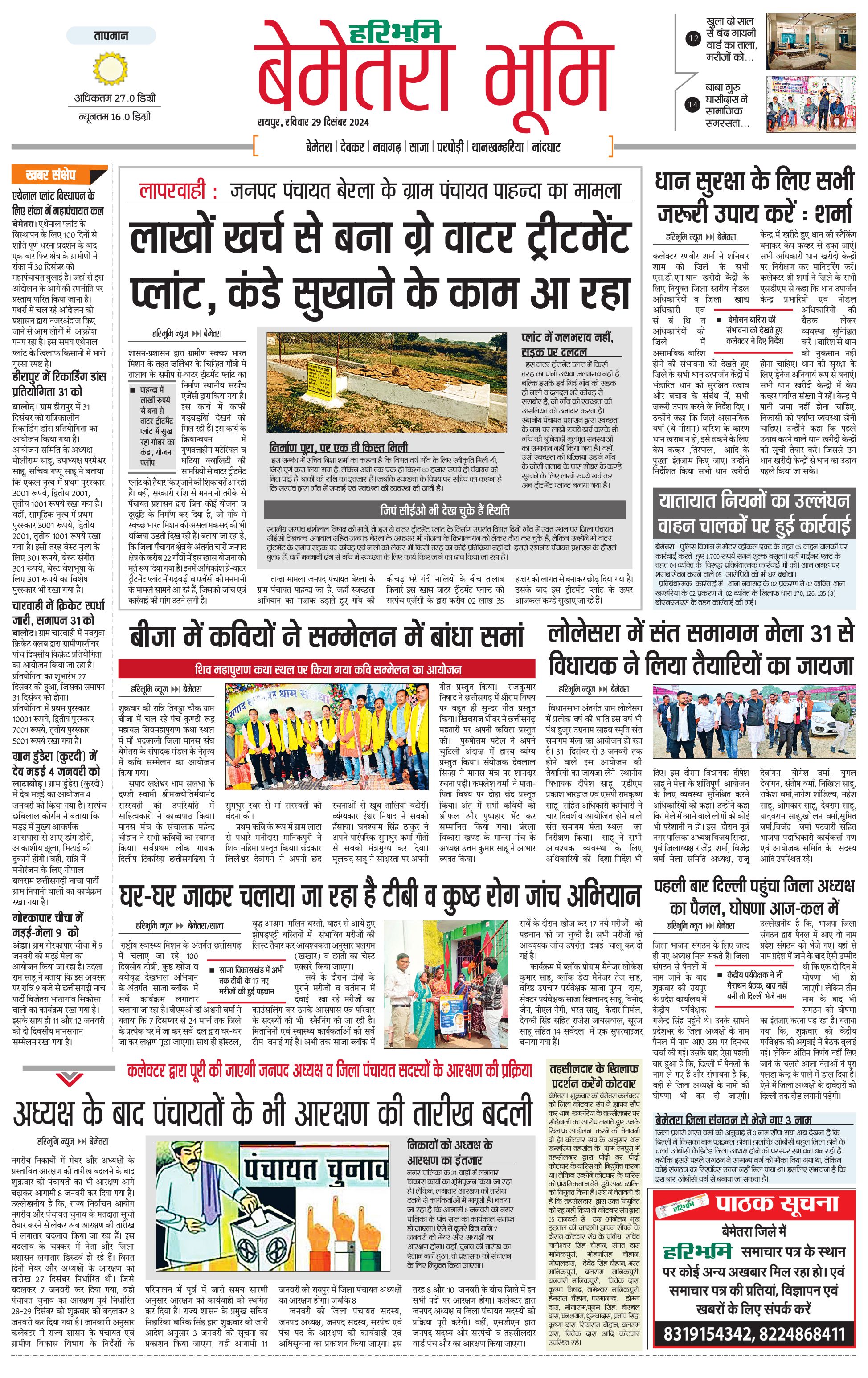 बेमेतरा भूमि - 29 Dec 2024 - - Page 1