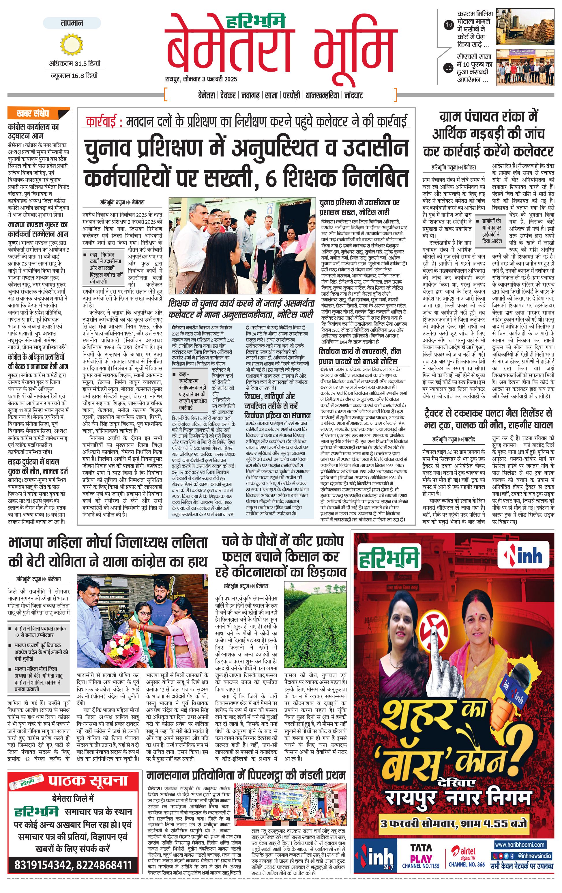 बेमेतरा भूमि - 03 Feb 2025 - - Page 1