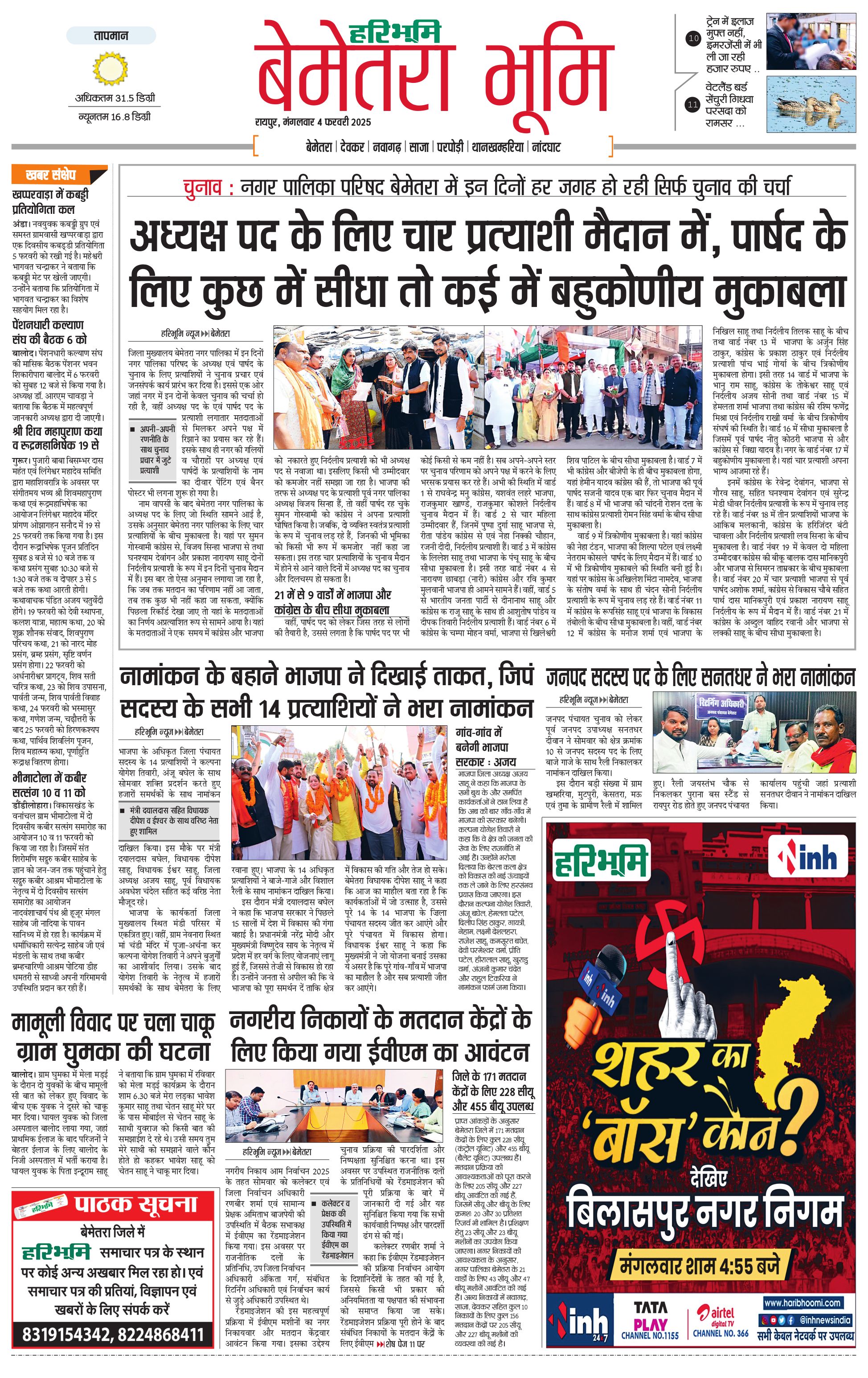 बेमेतरा भूमि - 04 Feb 2025 - - Page 1