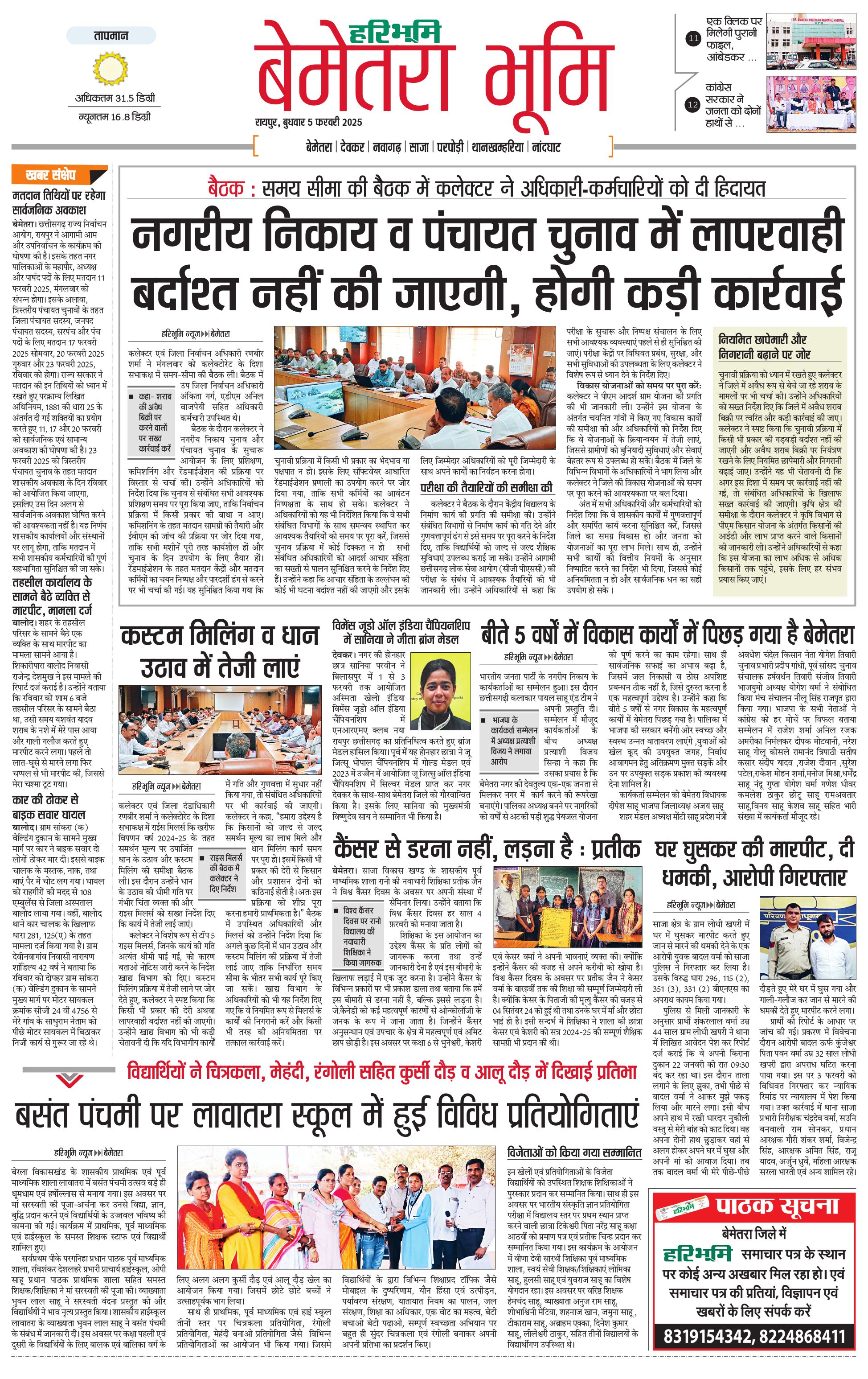 बेमेतरा भूमि - 05 Feb 2025 - - Page 1