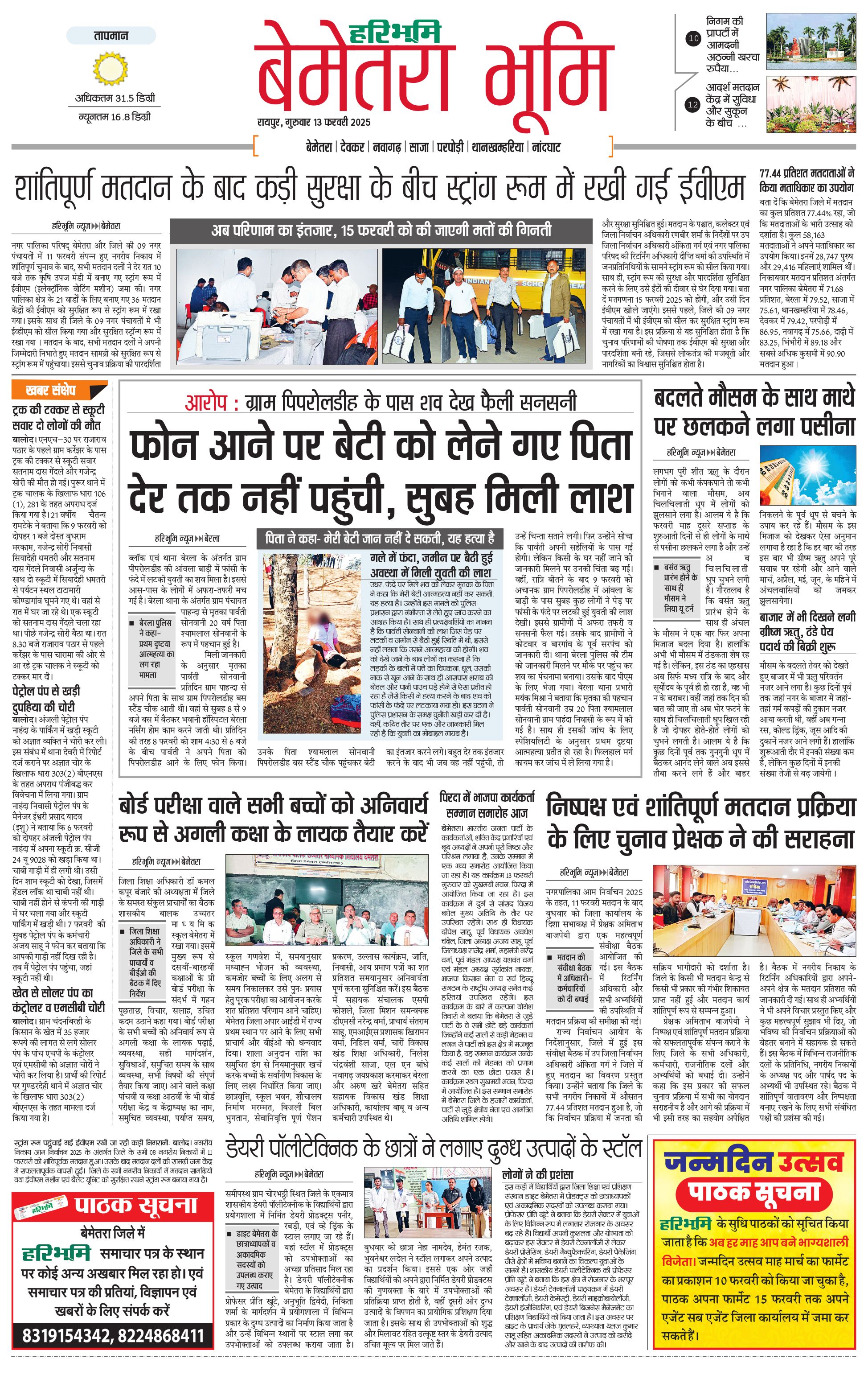 बेमेतरा भूमि - 13 Feb 2025 - - Page 1