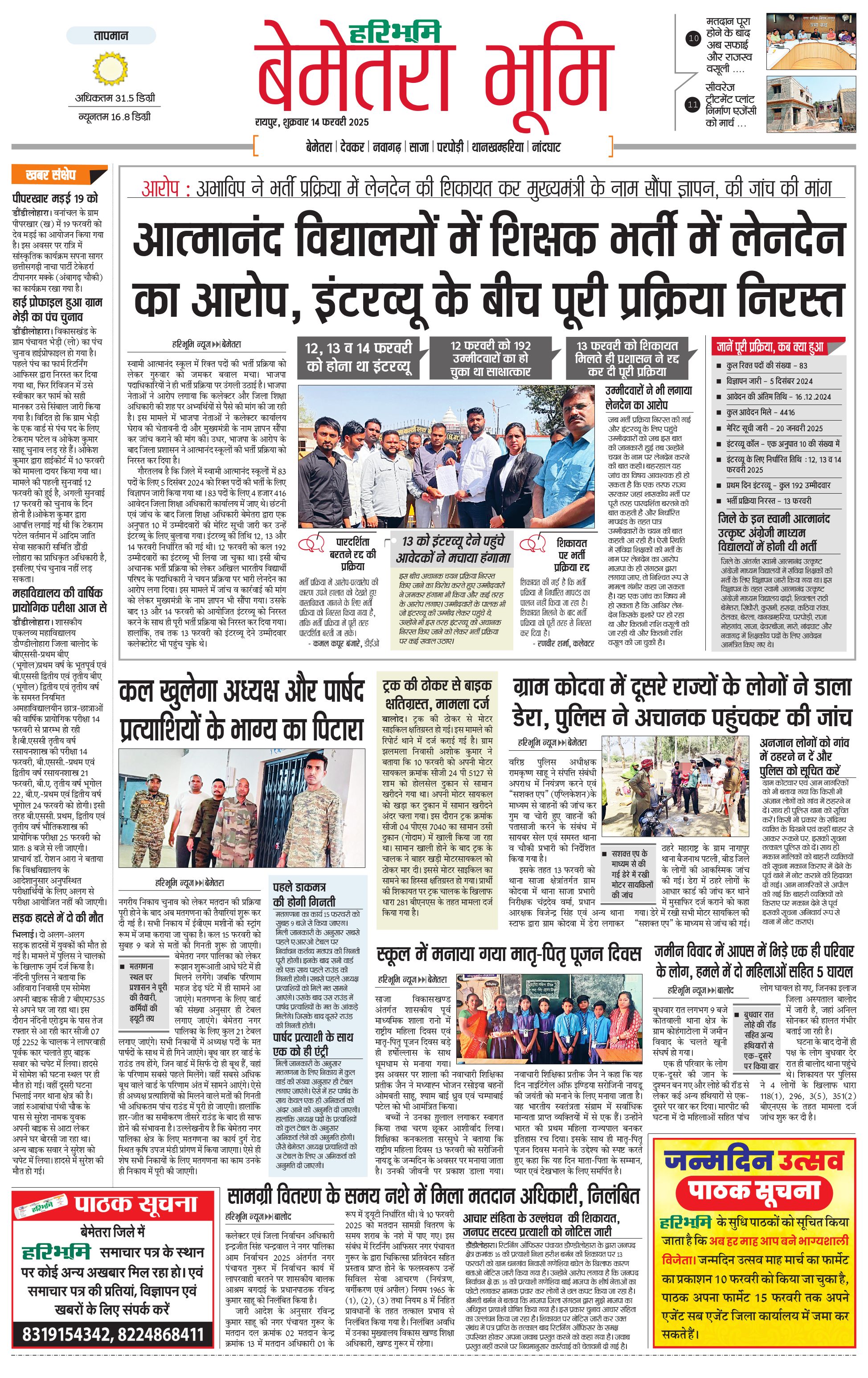 बेमेतरा भूमि - 14 Feb 2025 - - Page 1